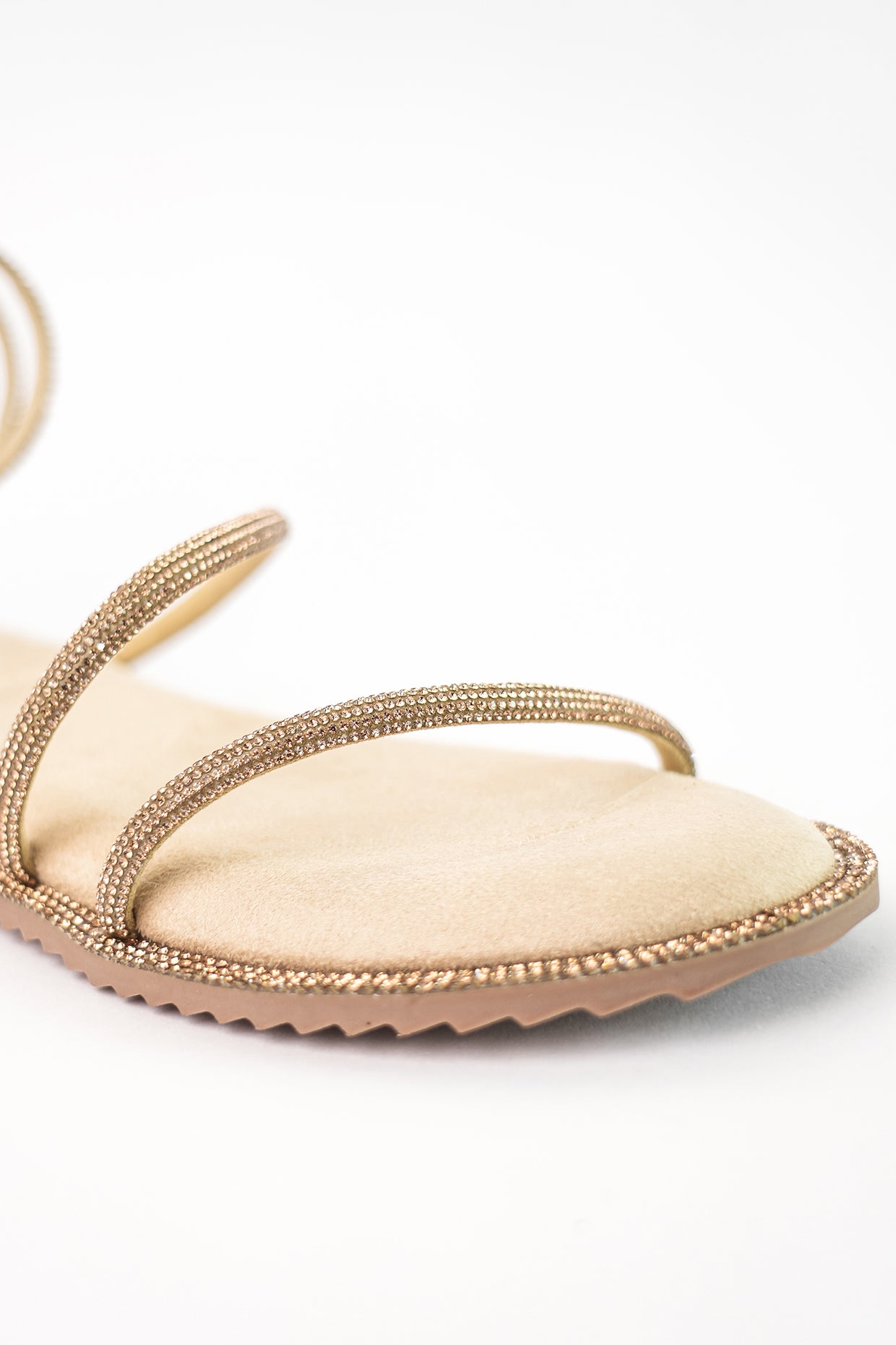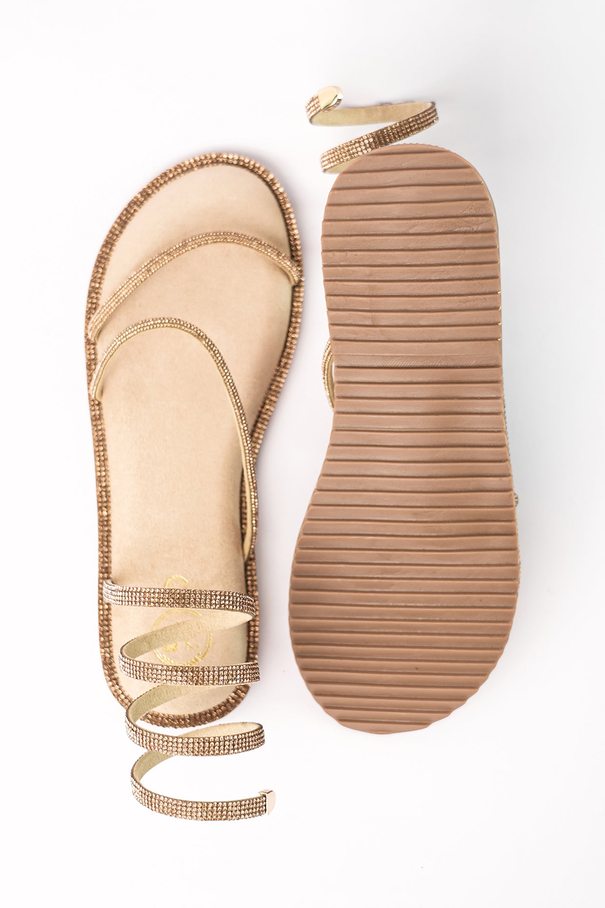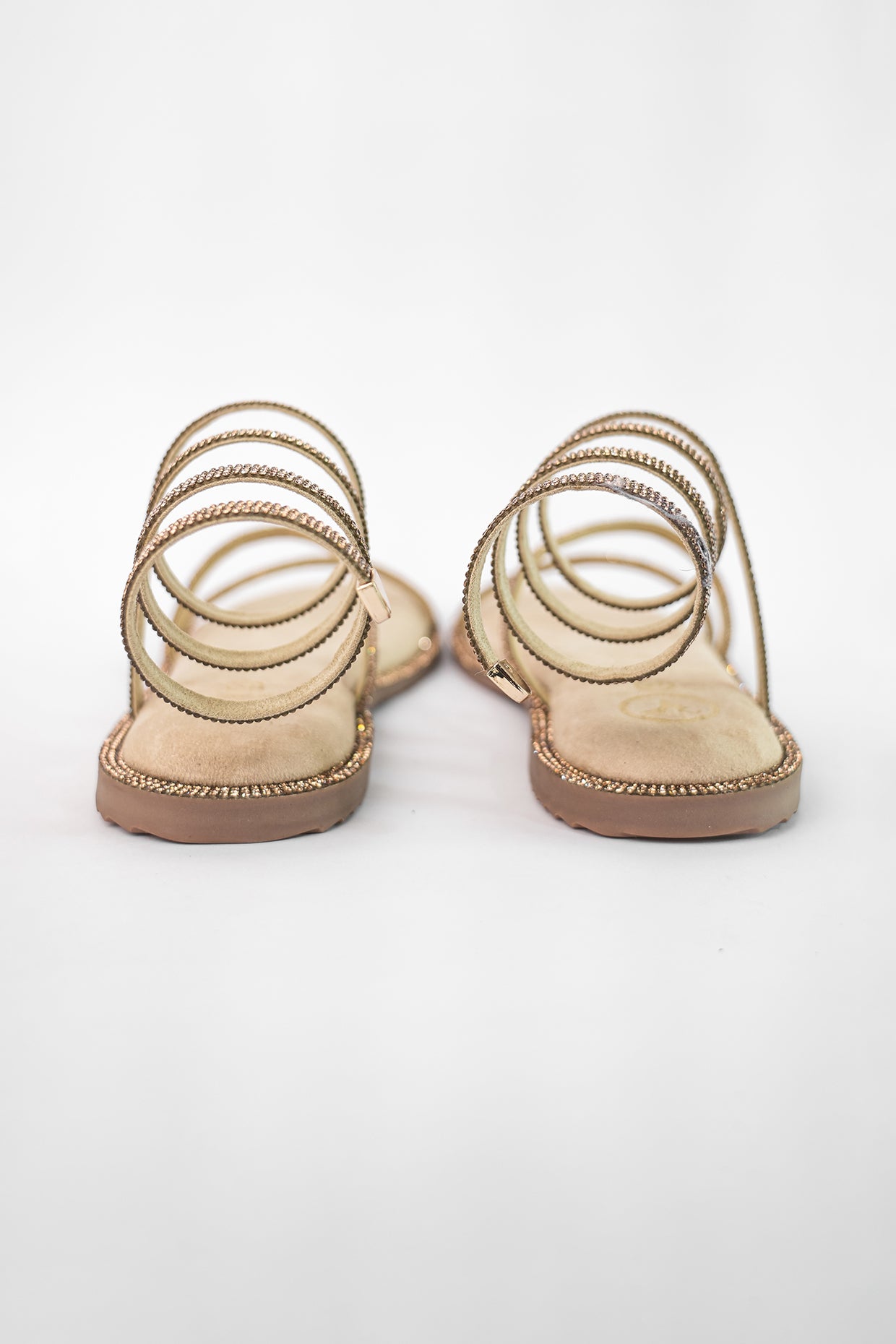 Introducing the Beige Gold Open Toe Pillow Walk Flats, a luxurious pair of golden flats adorned with delicate spiral designs embellished with sparkling golden rhinestones. These flats feature a memory cushion footbed for superior comfort and a vegan sole, with an easy slip-on closure. Perfect for weddings, parties, or casual outings, they bring an elegant shimmer and refined touch to any occasion.