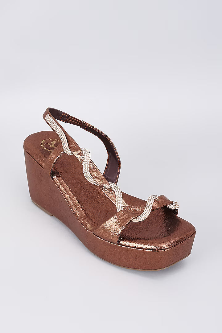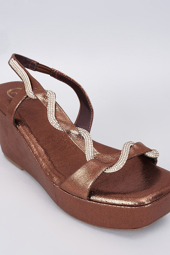 The Pillow Wedge Brown Sandals combine comfort and style with a unique design. Featuring elegant gold diamante-accented straps, these sandals offer a refined look. With a memory foam cushion base, they provide all-day comfort, making them perfect for pairing with ethnic wear at weddings and other special events.