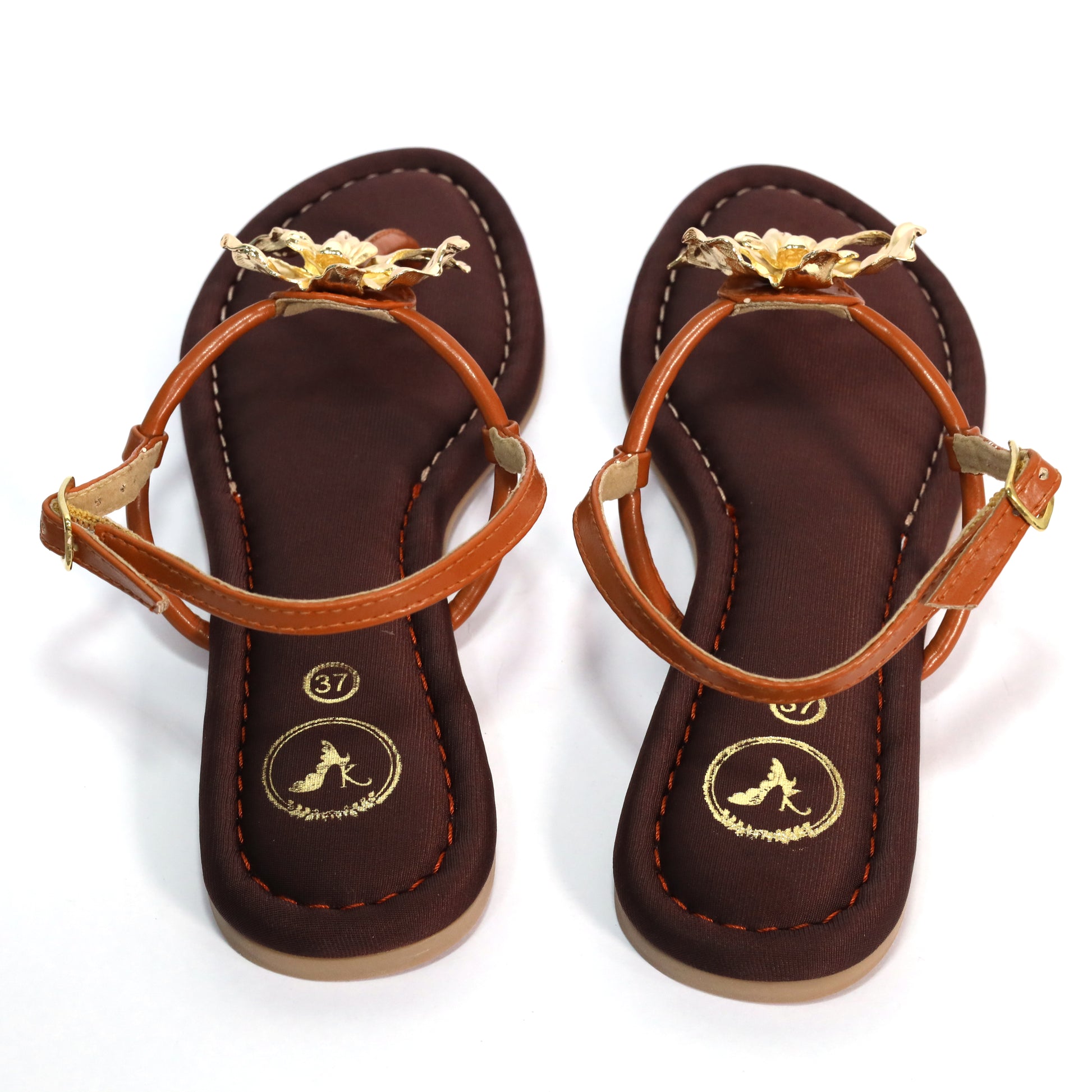 Brown Open Toe Slip on closure Zeno Brown Flat