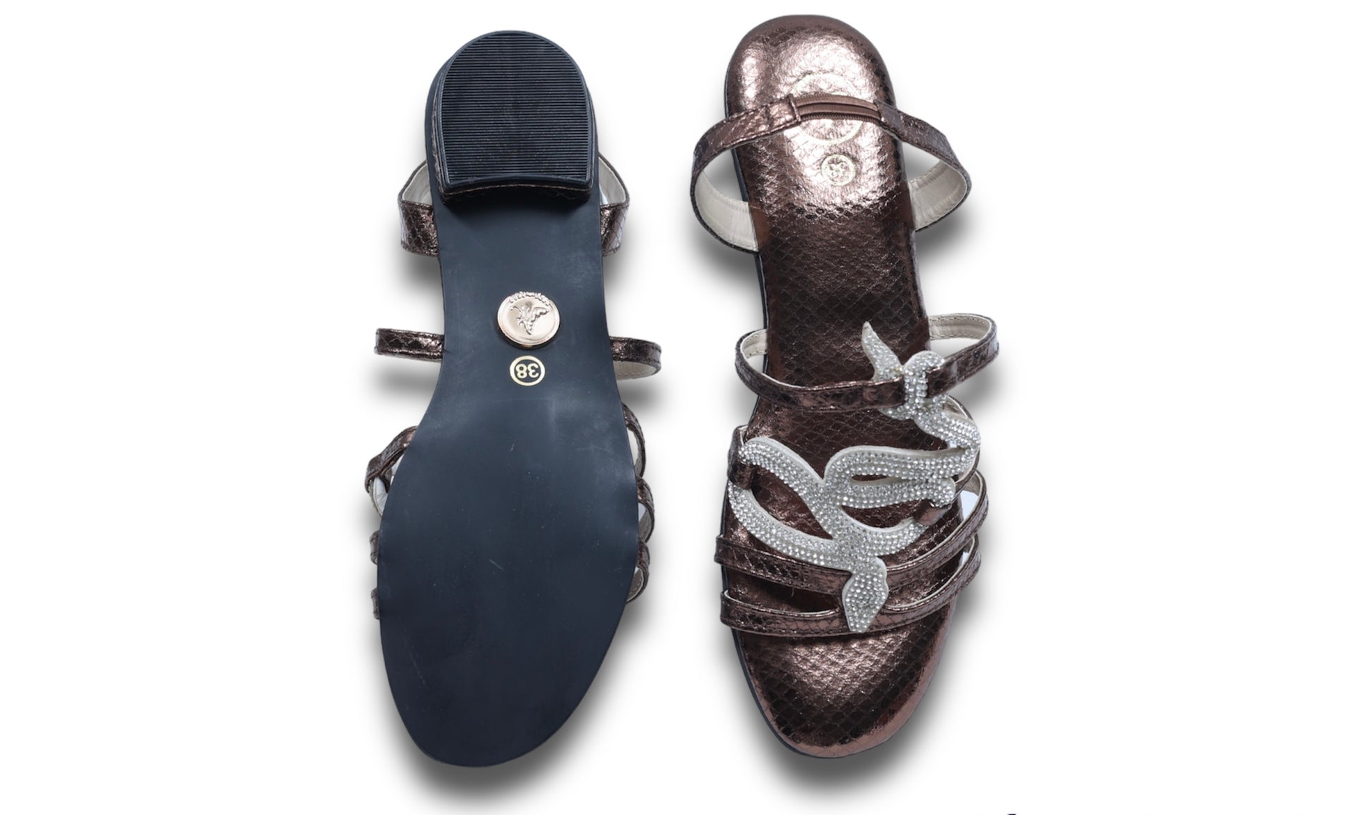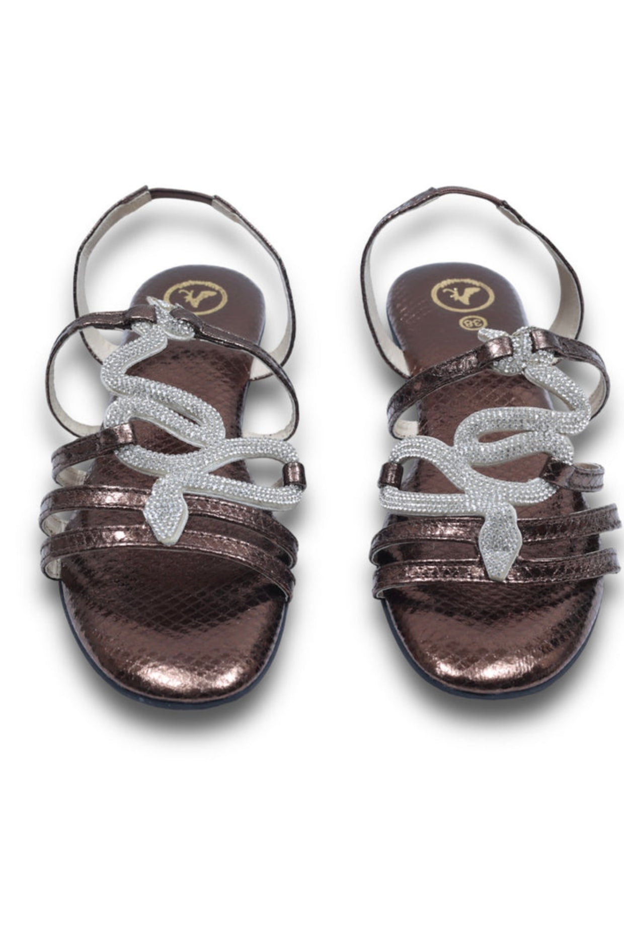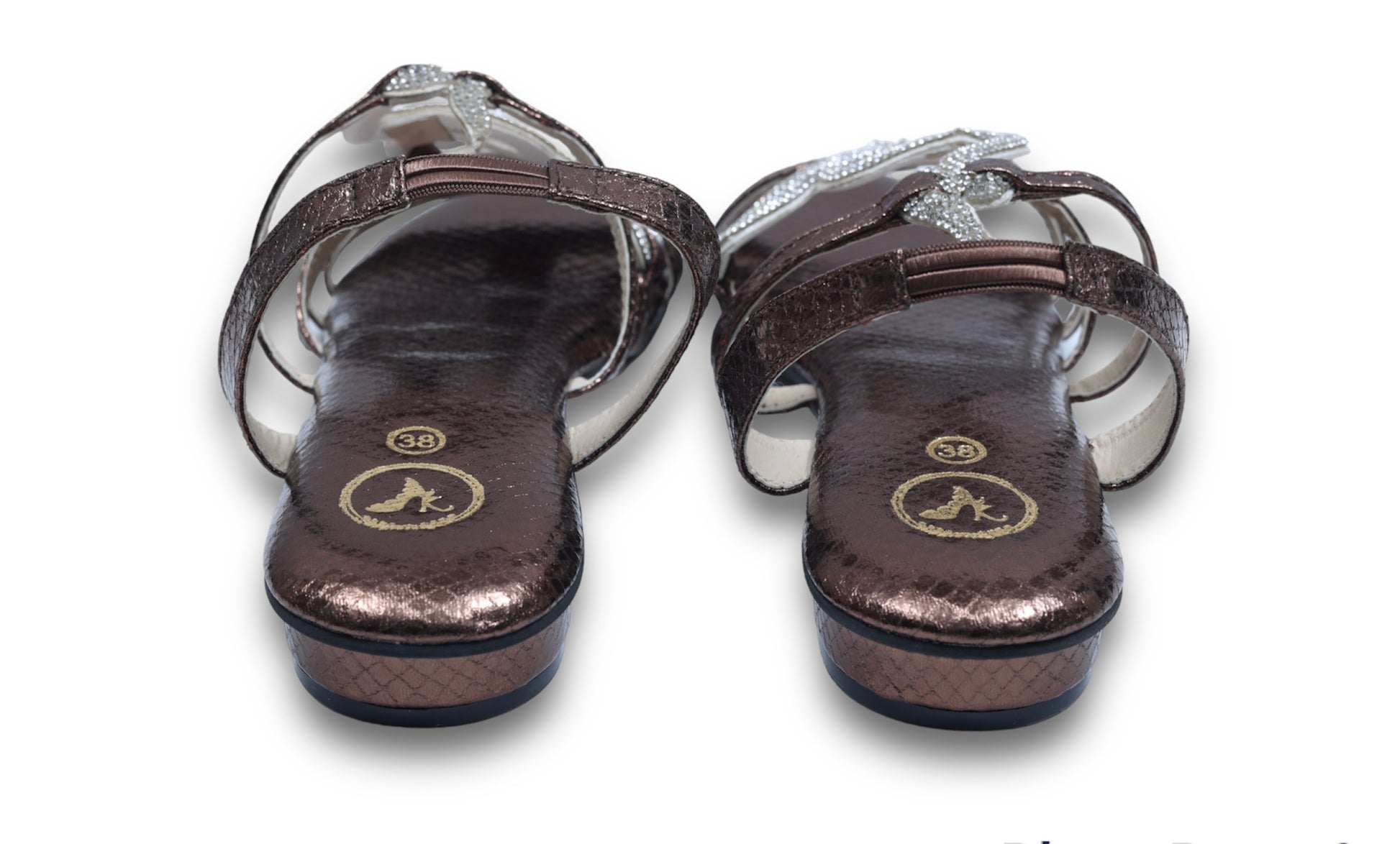 Step into style with Sana K's Zig Zag Flats. These chic flats feature rhinestones arranged in a snake pattern on a bed of strings, enhancing the beauty of your feet. With an open-toe style and a hook & loop closure, they provide both elegance and convenience. The double-cushioned design ensures comfort, making them perfect for beachwear, airport looks, and parties. Elevate your footwear collection with the versatile and stylish Zig Zag Flats from Sana K.