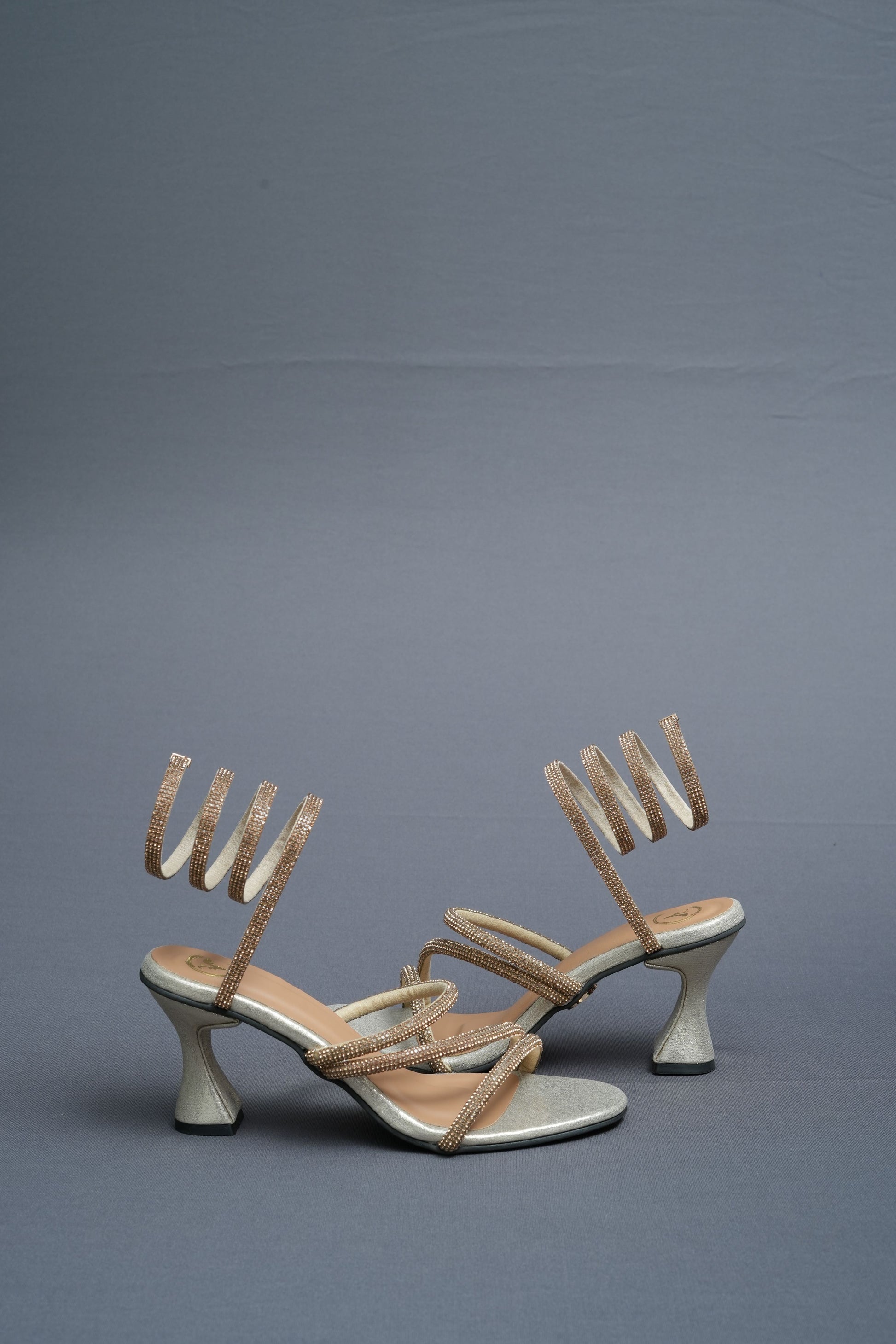 Step into elegance and luxury with these Champagne Gold spring heel sandals. Designed to provide a beauty treatment for your feet, they feature an elegant closed-shaped design with extra cushioning for maximum comfort. Perfect for both parties and weddings, you have the option to add strings in the front and the back counter, allowing for a customizable and elegant look. Indulge in unmatched style and comfort with these sandals, offering the perfect combination of sophistication and ease for any occasion. Pamper your feet with elegance and enjoy the ultimate blend of beauty and comfort.