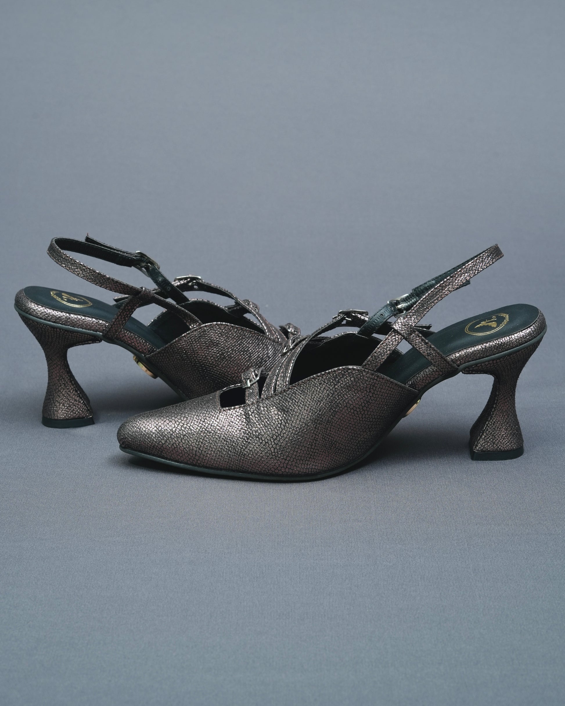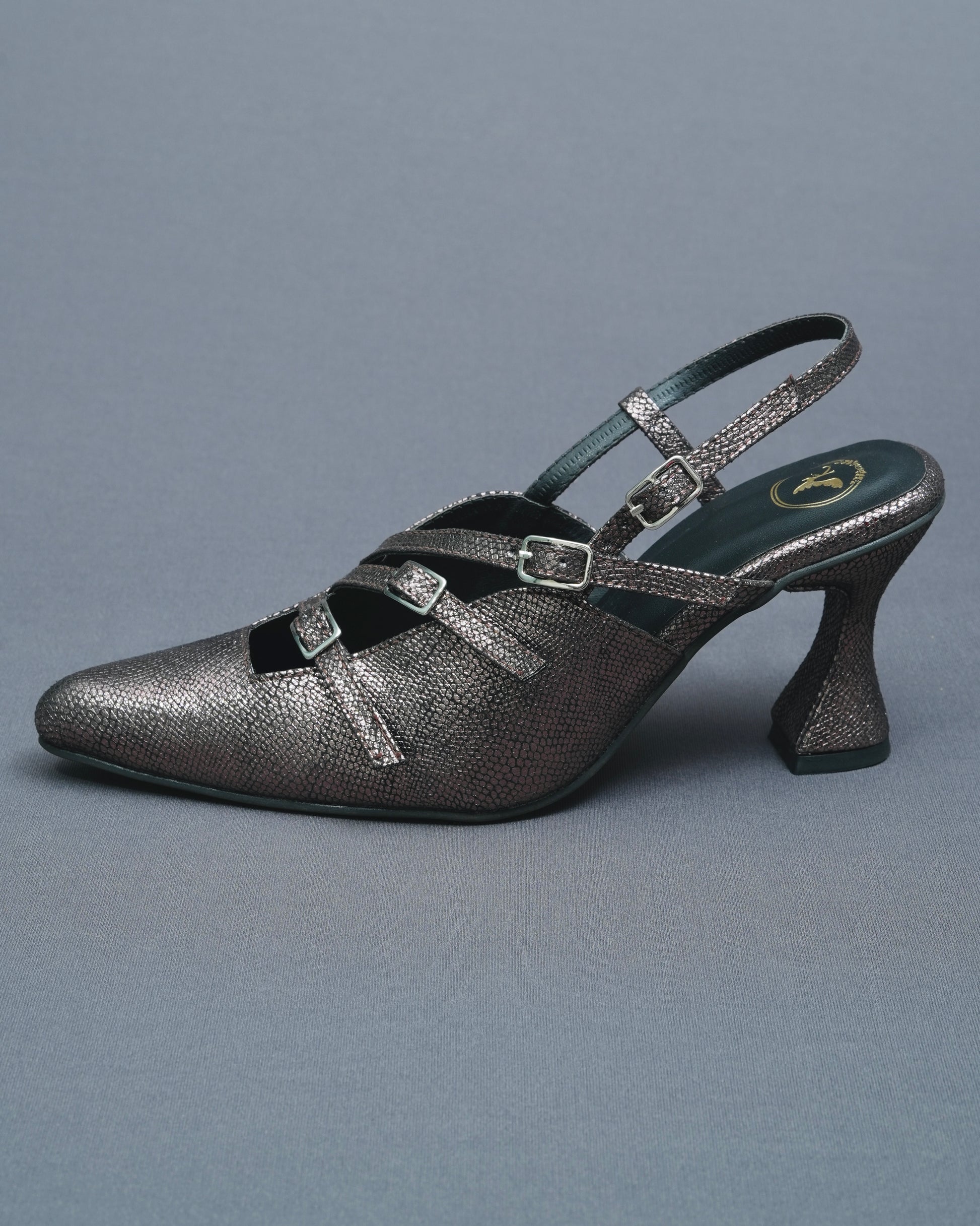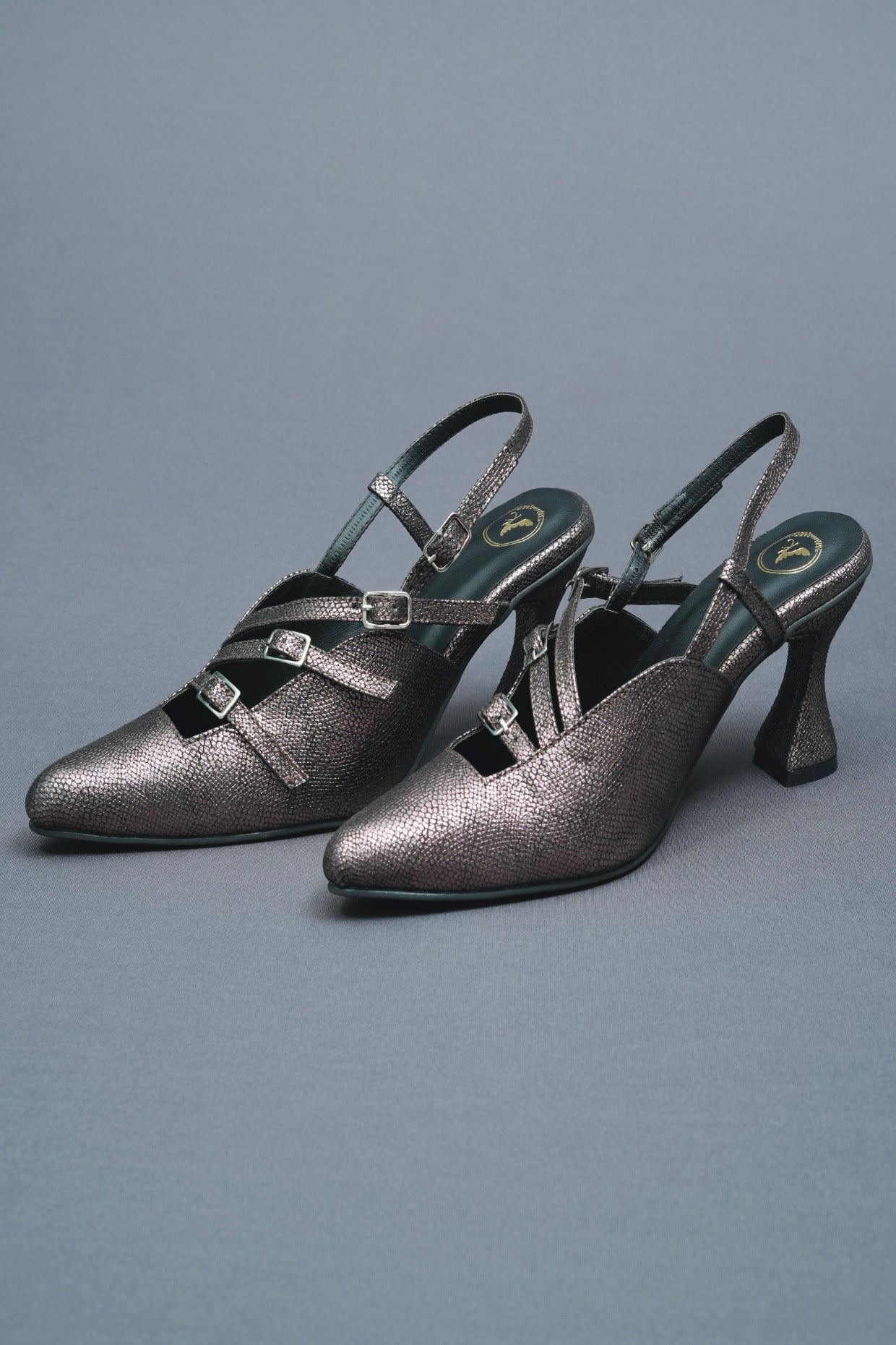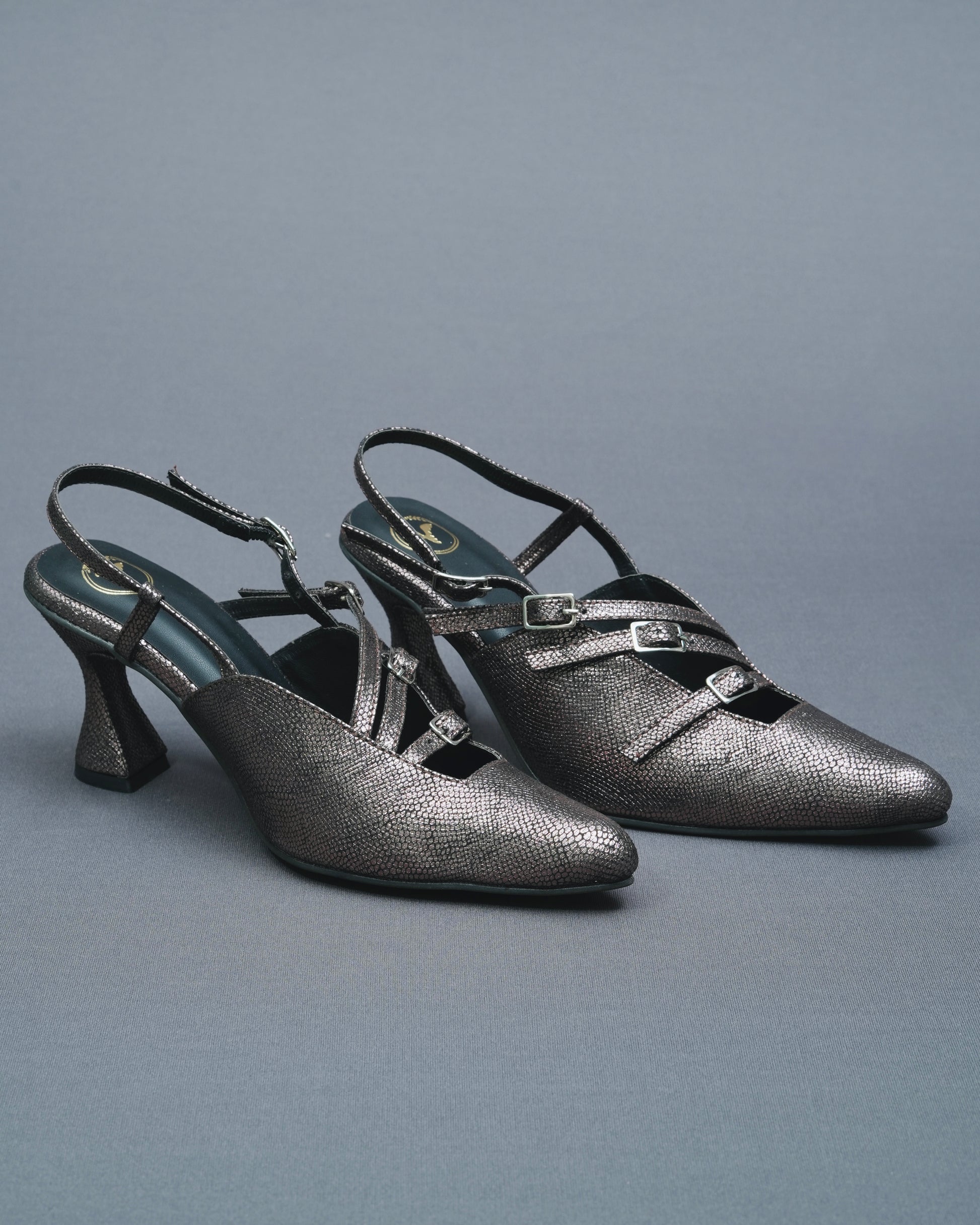 Introducing our Close Toe Faux Leather Perry Heels with buckle closure, featuring a unique design that sets them apart. These closed-toe heels boast three stylish straps, offering a distinctive look and secure fit. Perfect for adding a touch of elegance to any outfit, these heels are both fashionable and comfortable. Elevate your footwear collection with this exceptional pair.