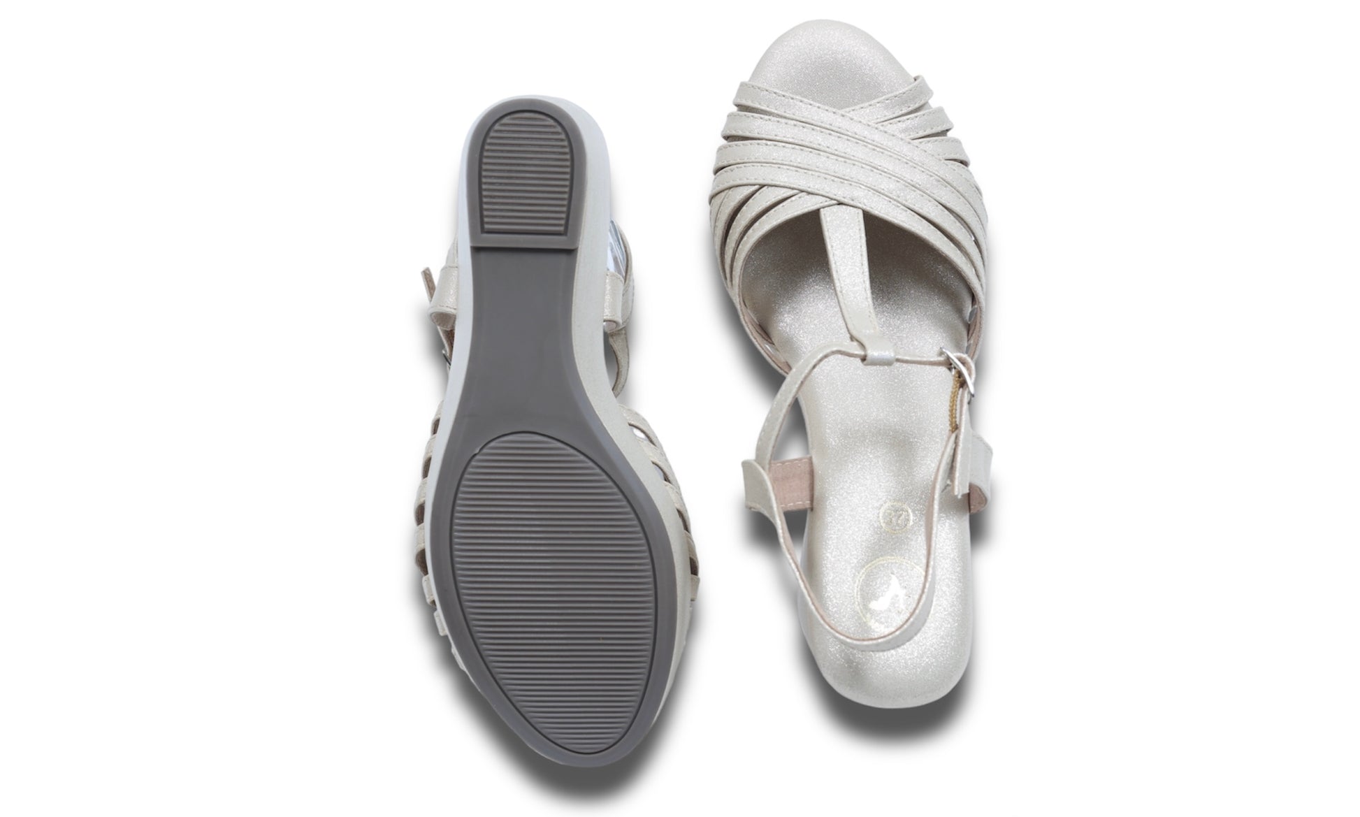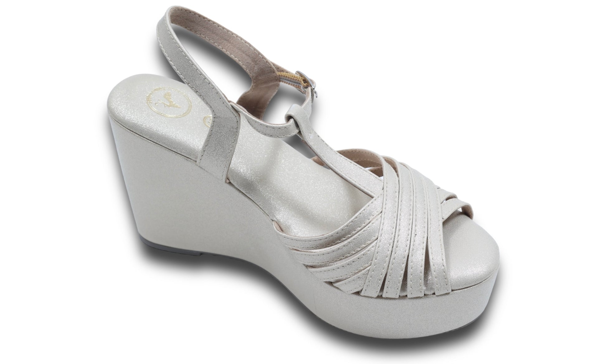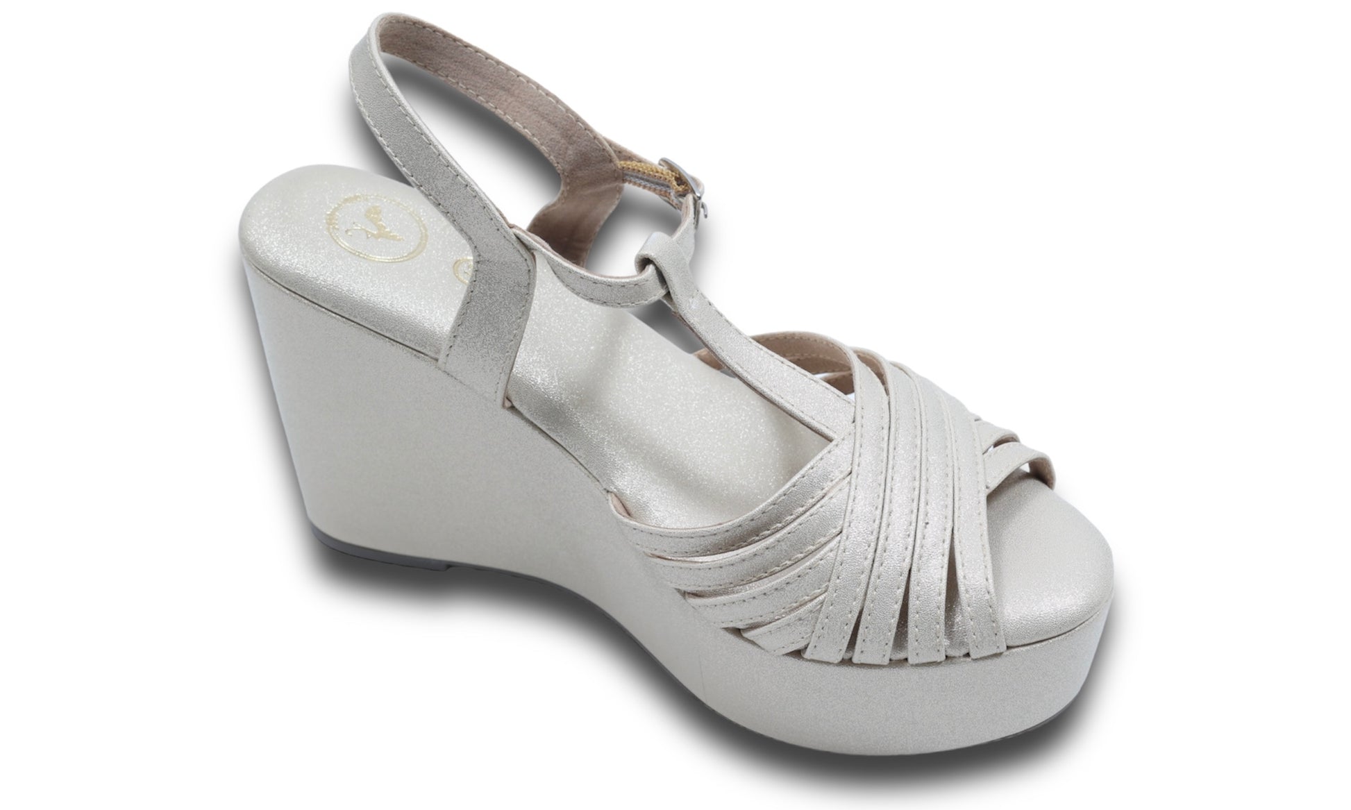 Dolphin Wedge Junk Beige Open Toe Heels