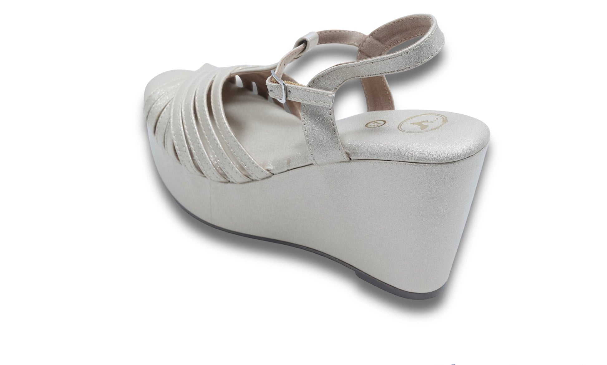 Introducing our Beige Dolphin Wedge Heels, handcrafted to perfection for those who value both style and comfort. Featuring a unique criss-cross material design, these 3.5-inch wedge heels provide the perfect height and support for long hours. With an open toe and convenient hook-and-loop closure, they are suitable for weddings, casual outings, and ethnic wear. Step confidently into any occasion with the timeless elegance of Sana K.