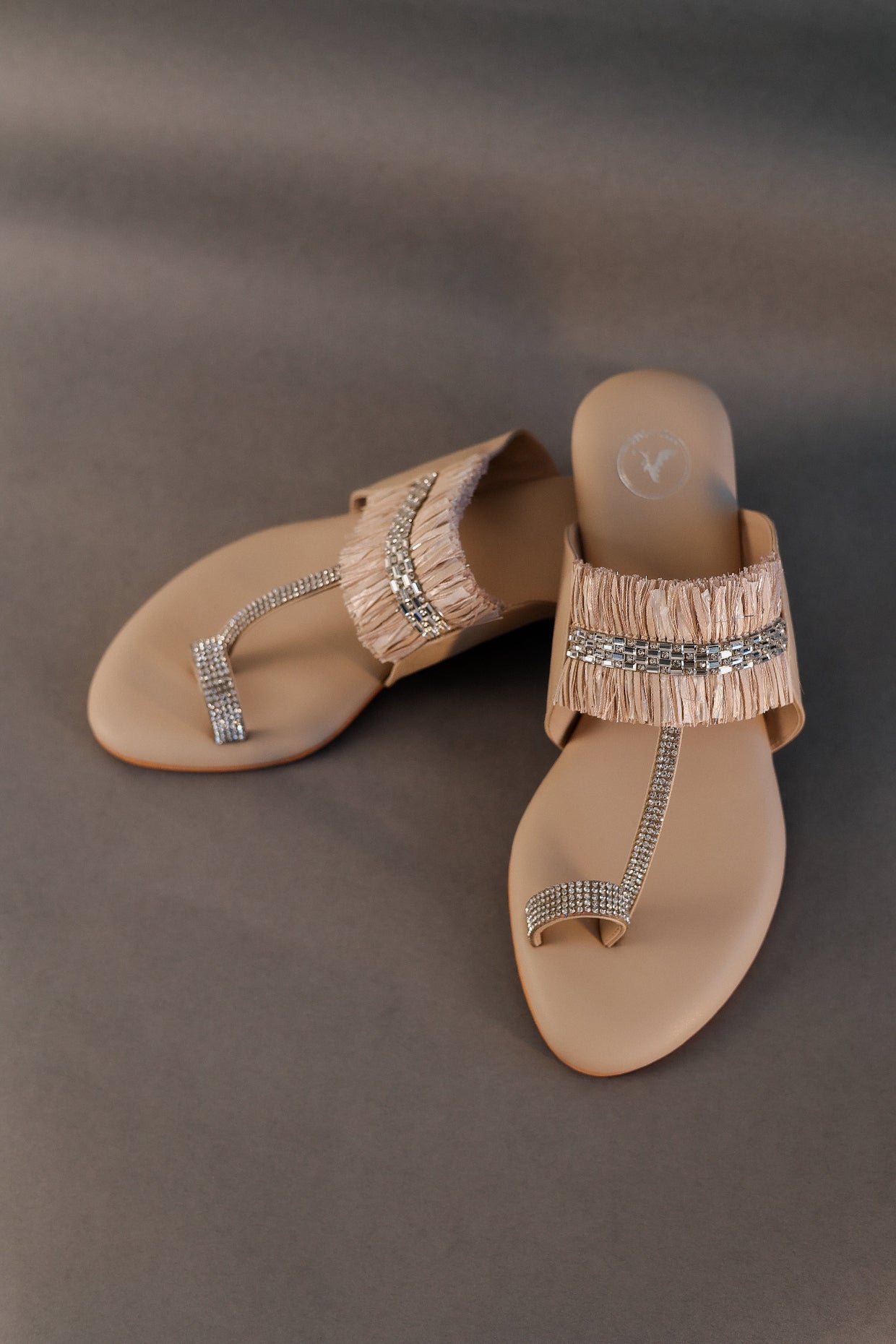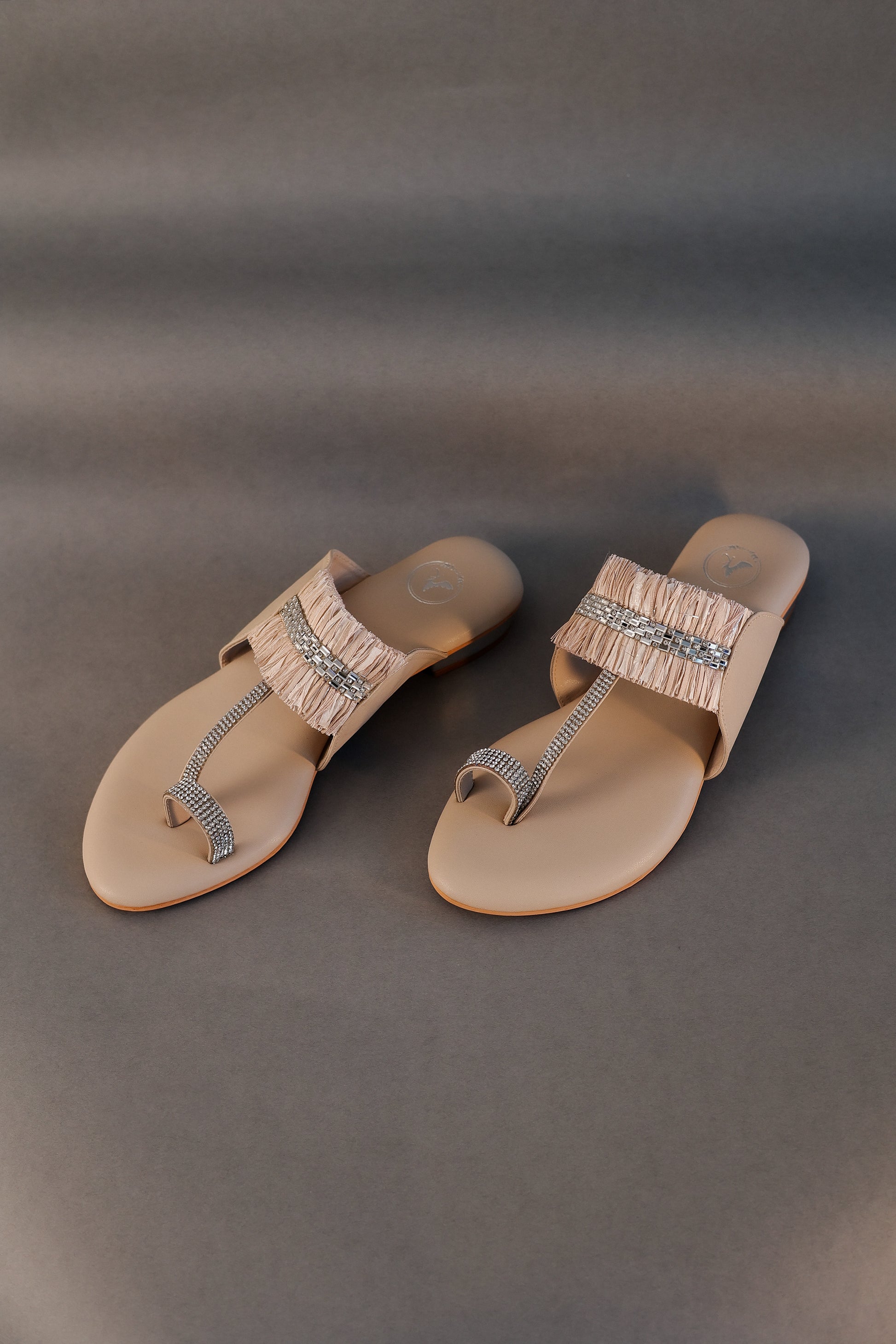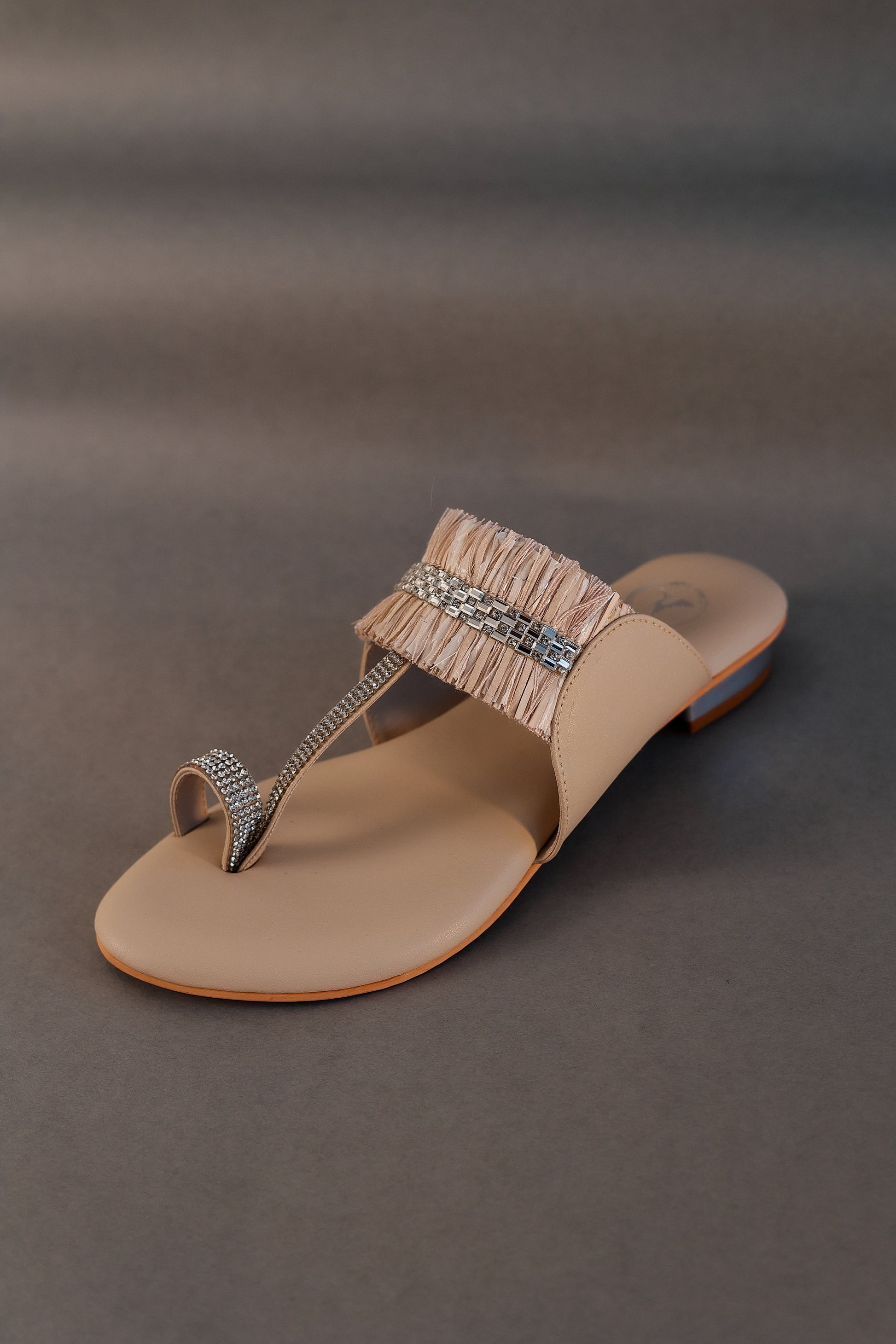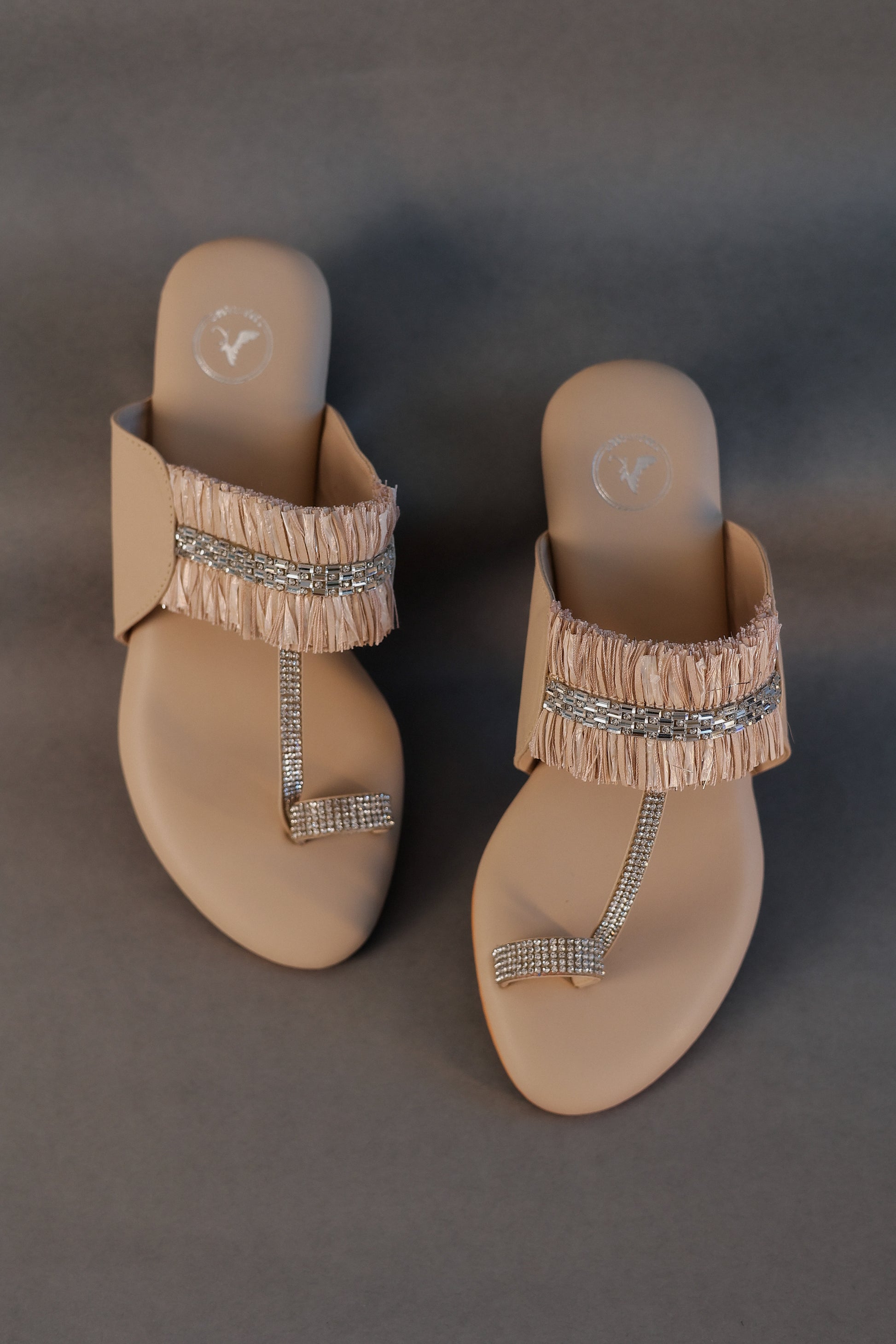 Beige Stringy Kolhapuri Open Toe Heel Sandal