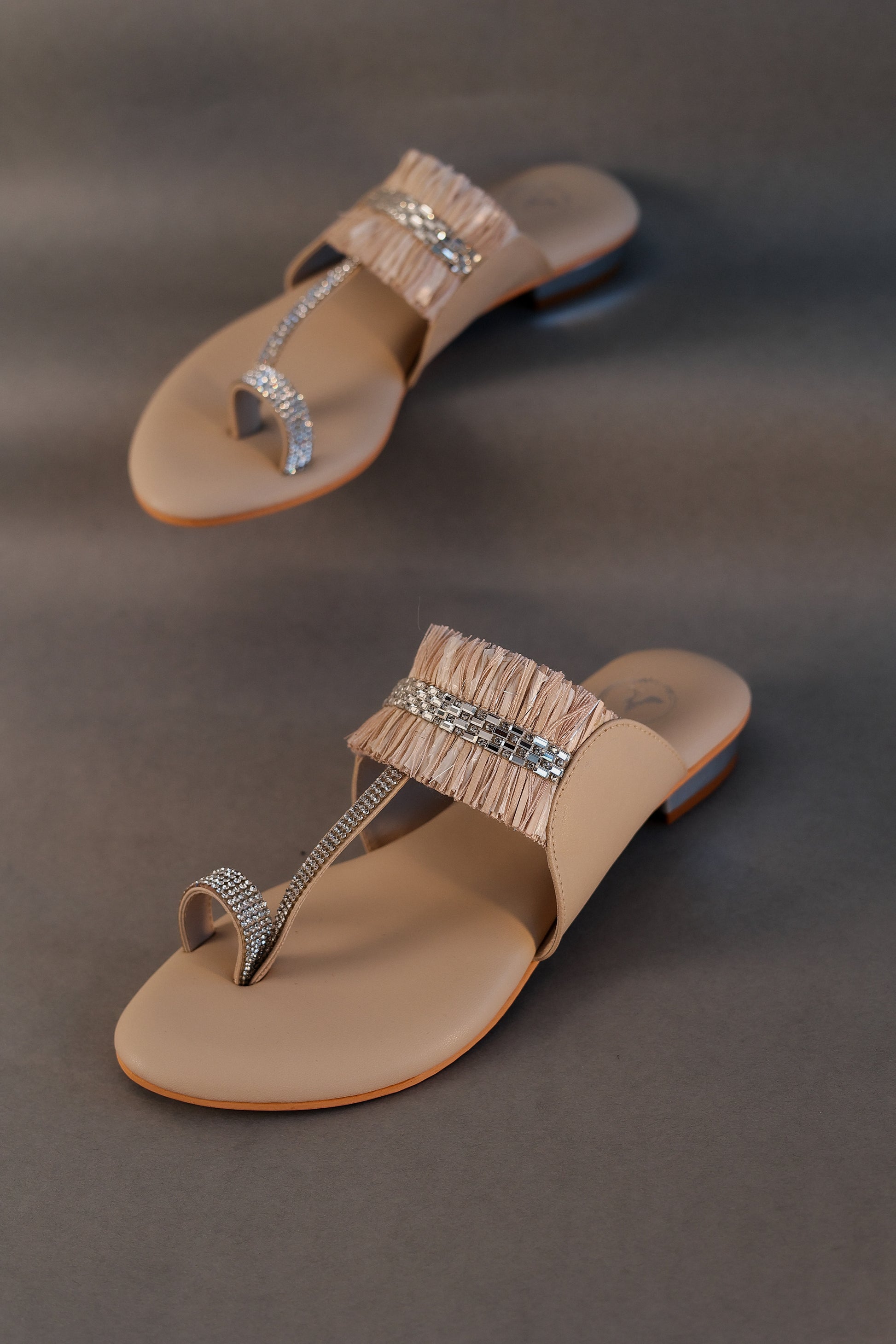 Experience the perfect blend of comfort and style with our Beige Stringy Kolhapuri Open Toe Heel Sandals. Designed with memory foam and extra cushioning, these sandals ensure hassle-free working hours. The unique styling, featuring silver strings embellishments, adds a touch of elegance to your feet and outfit. Versatile for casual day wear or party wear, these sandals effortlessly complement both Indian and Western attire.