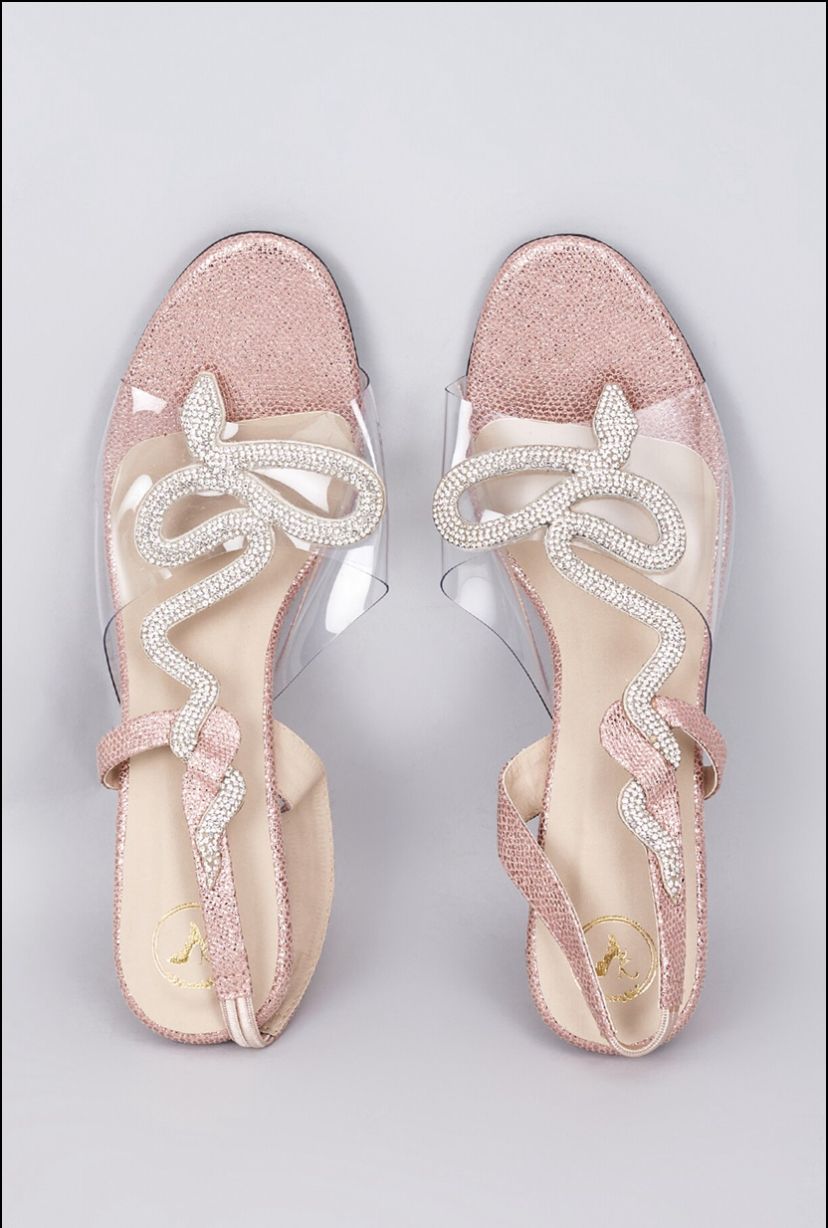 Introducing our Open Toe Faux Leather Zigzag Snake Heels with hook and loop closure. These elegant heels feature a stunning snake rhinestone upper on a transparent PVC base, adding a touch of glamour to your feet. Perfect for any special occasion, these heels combine style and sophistication, making them a standout addition to your footwear collection.