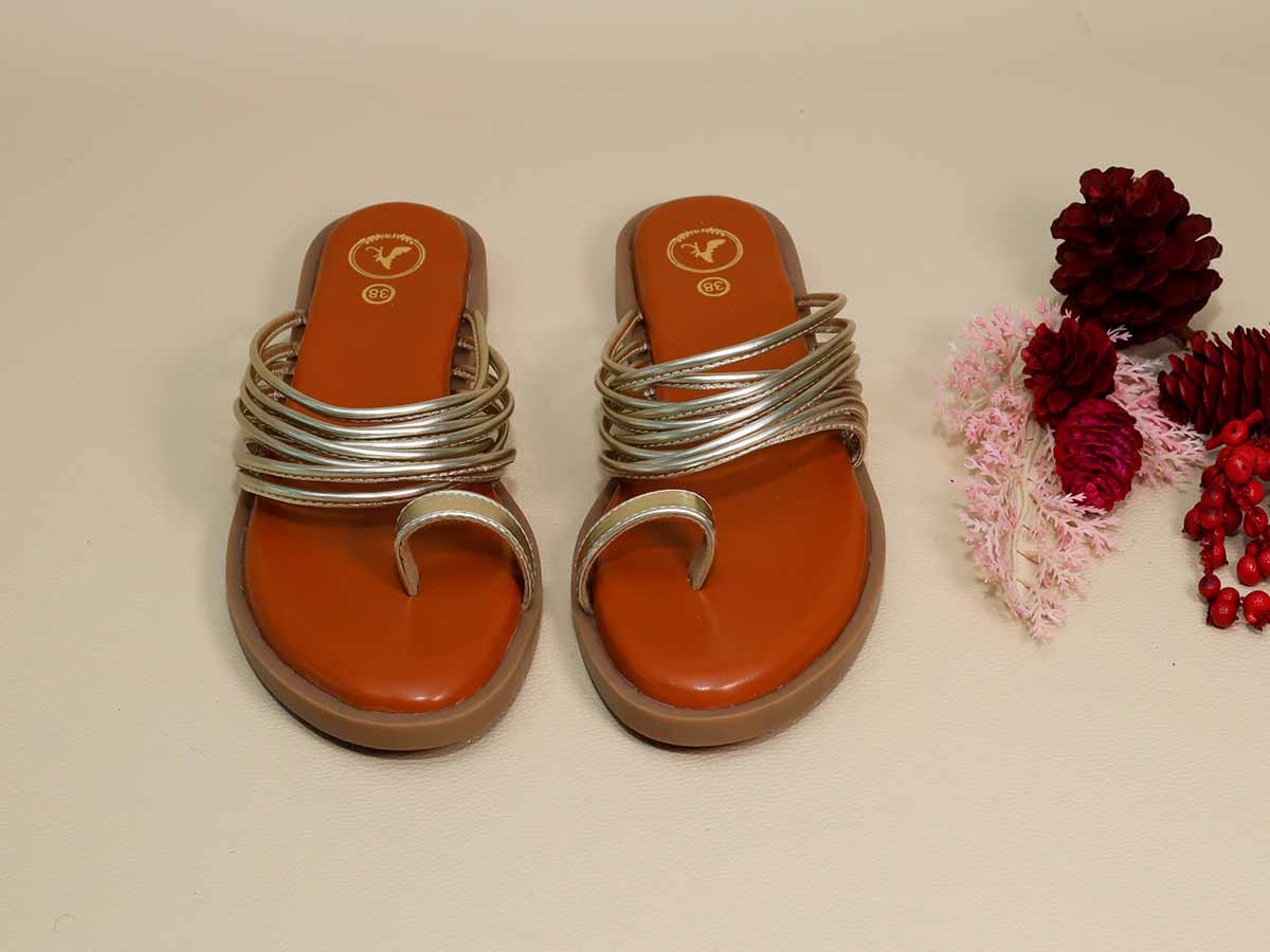 Add a touch of effortless elegance with these Gold String Flats, designed with delicate metallic string straps for a graceful finish. Crafted with a soft cushioned sole and sturdy base, they ensure all-day comfort without compromising on style. Ideal for festive wear, casual outings, and fusion looks.