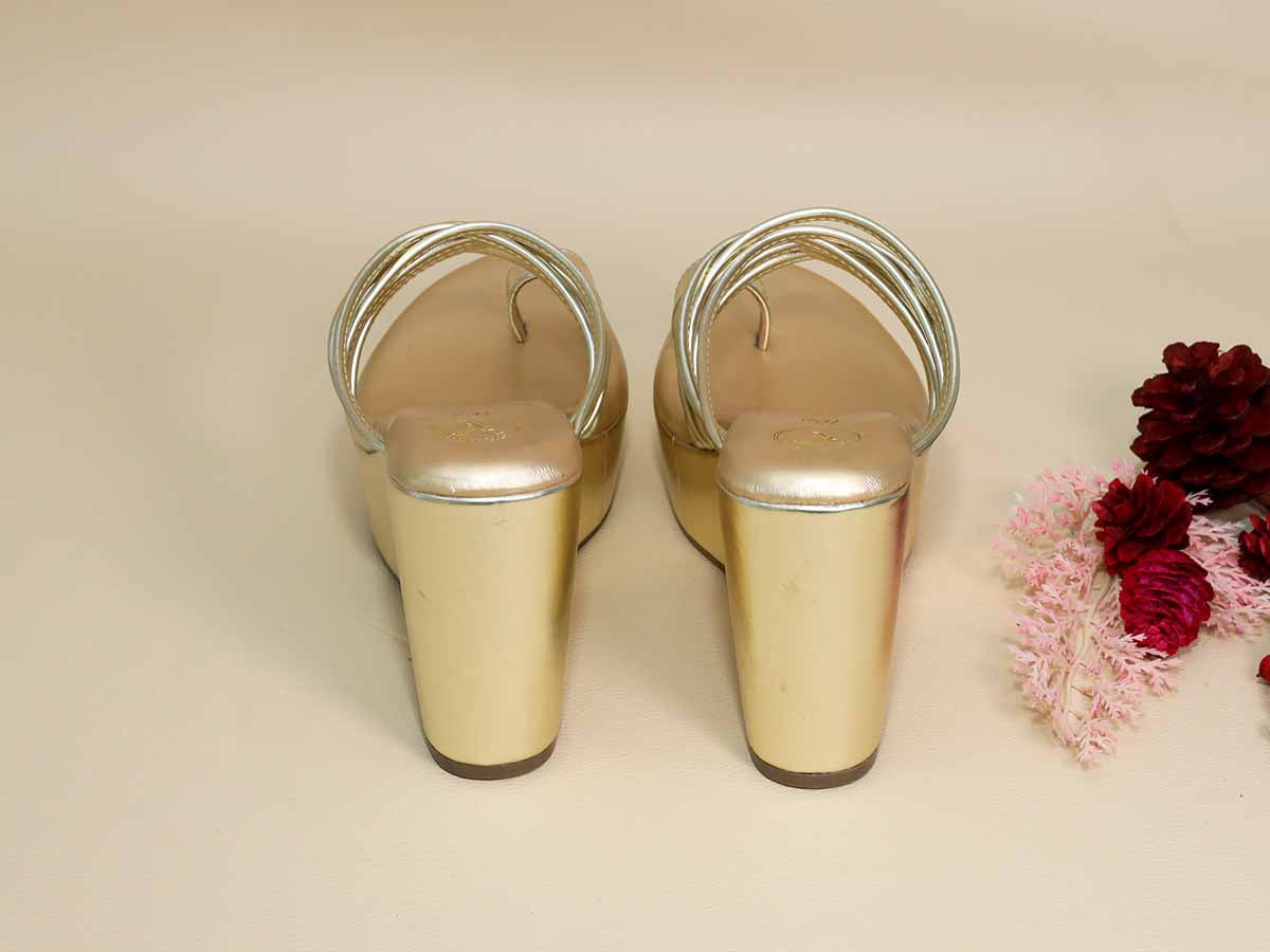 Elevate your festive and everyday looks with these Gold String Wedges, crafted with sleek metallic gold string straps and a comfortable wedge sole. Designed to offer both style and ease, these wedges add a subtle shine to your outfit while ensuring all-day comfort.