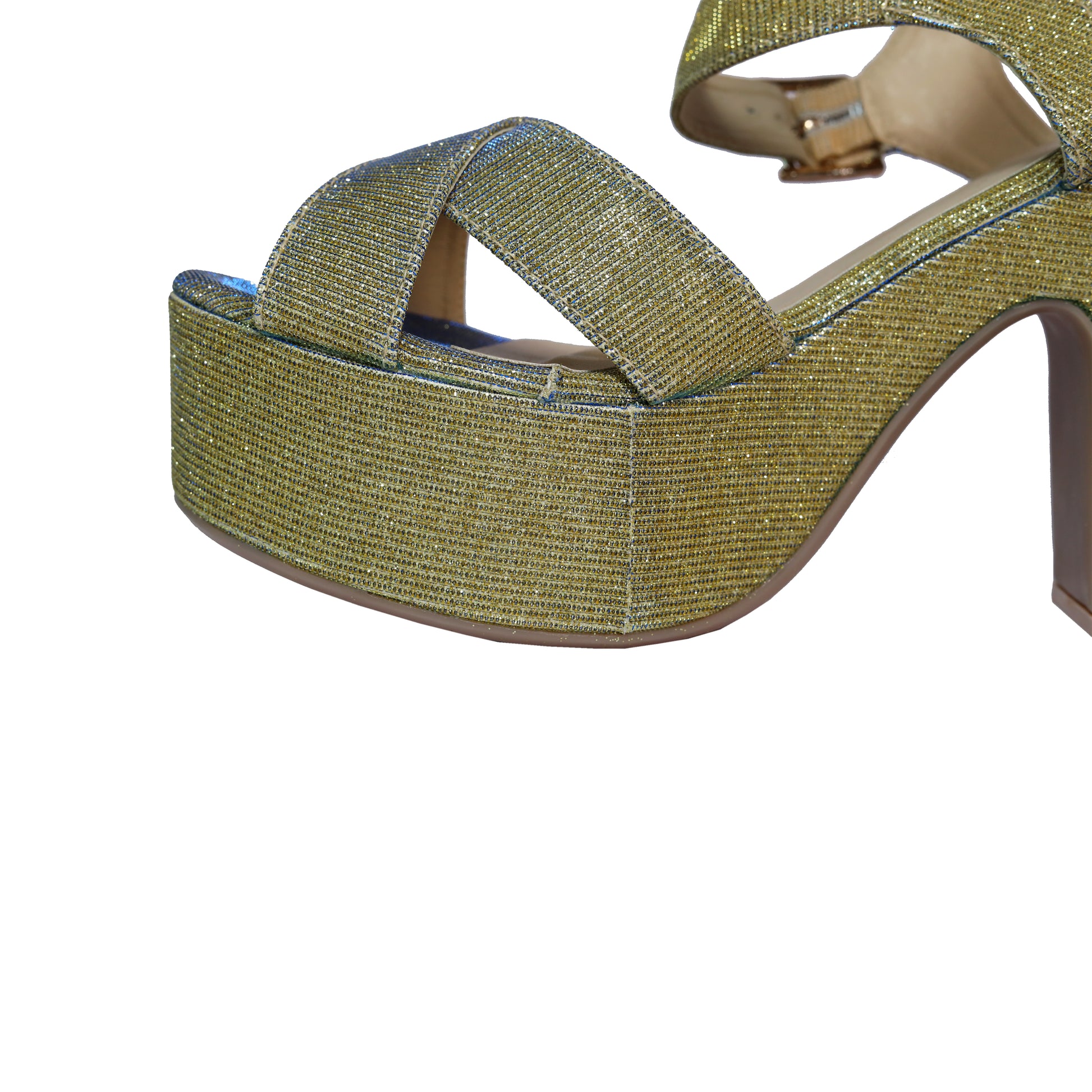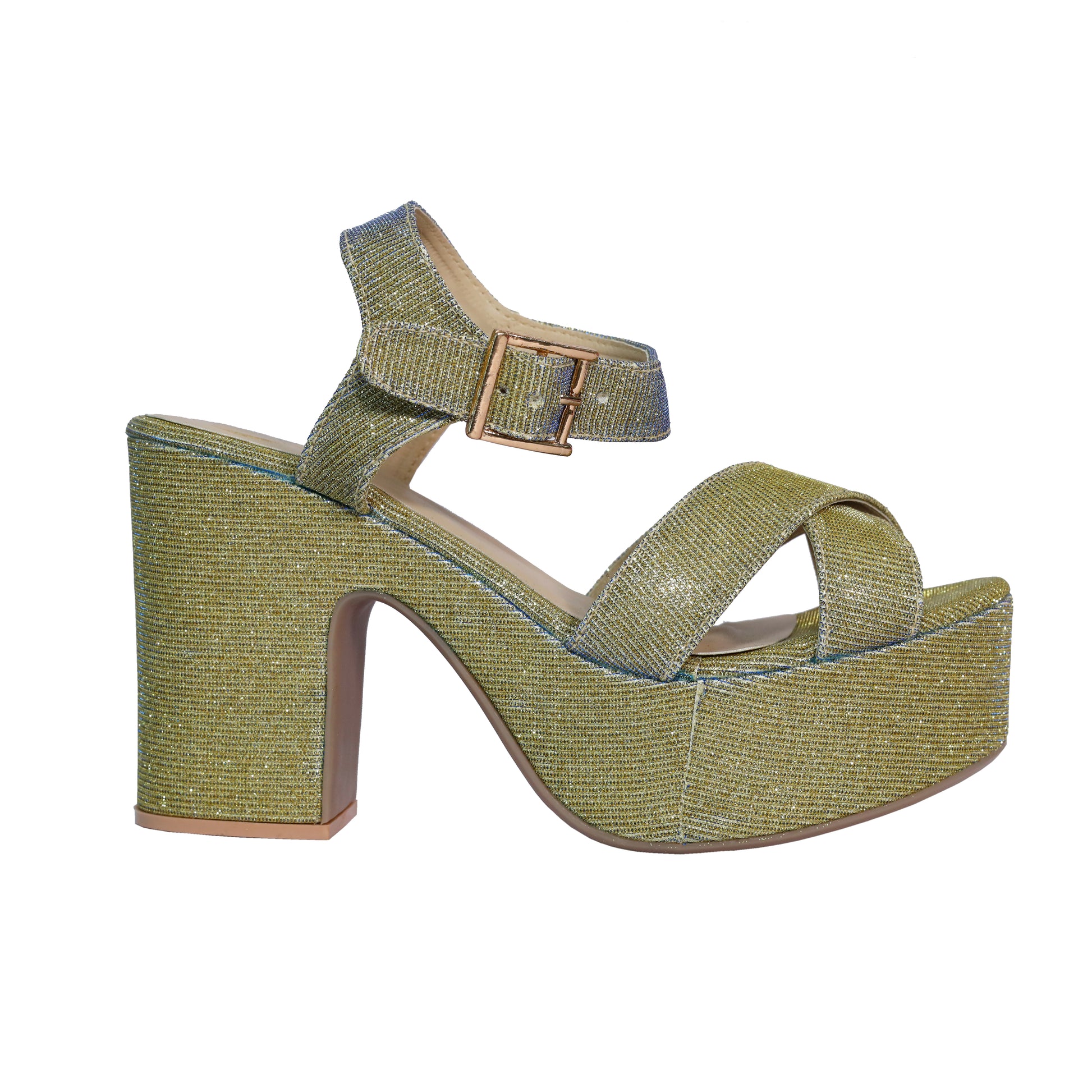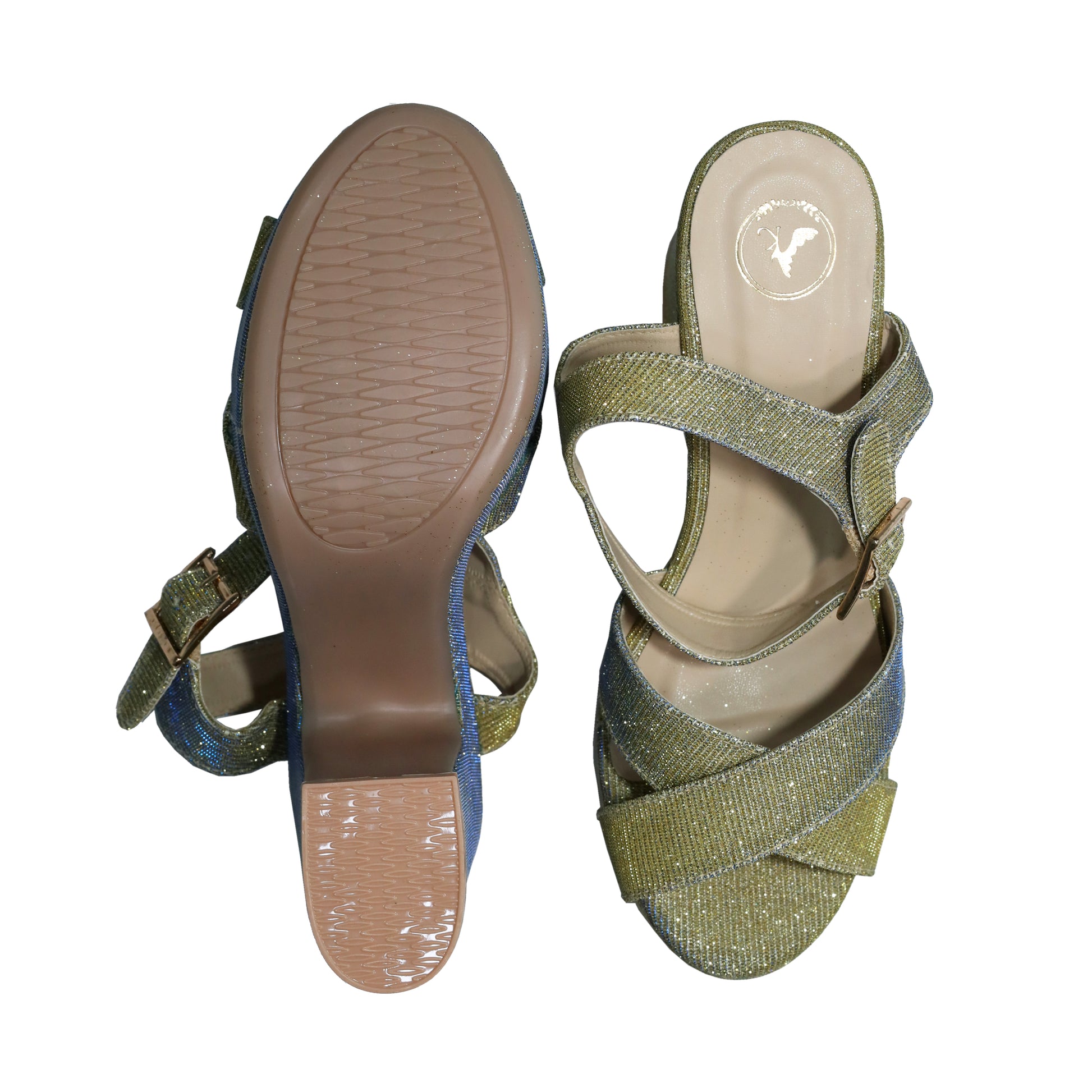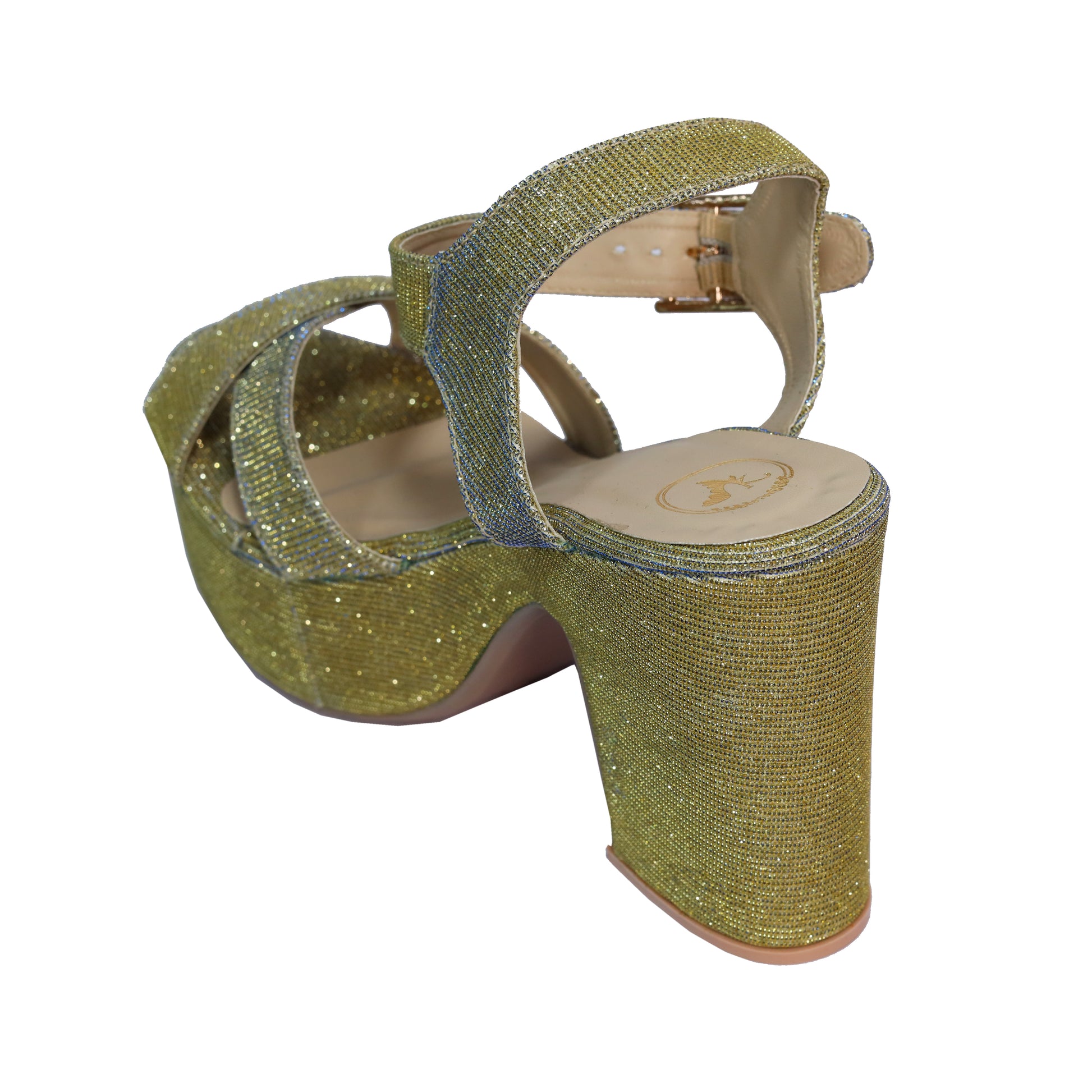Step into the spotlight with our Gold Glitter Wedge Heels for Women, a dazzling blend of glam, comfort, and stability. Crafted with high-shine shimmer fabric, these gold platform heels feature a bold criss-cross front strap that adds flair and ensures a secure fit. Designed with an ankle strap for support and sturdy chunky block heels, these wedges offer both elevation and ease — perfect for dancing the night away.