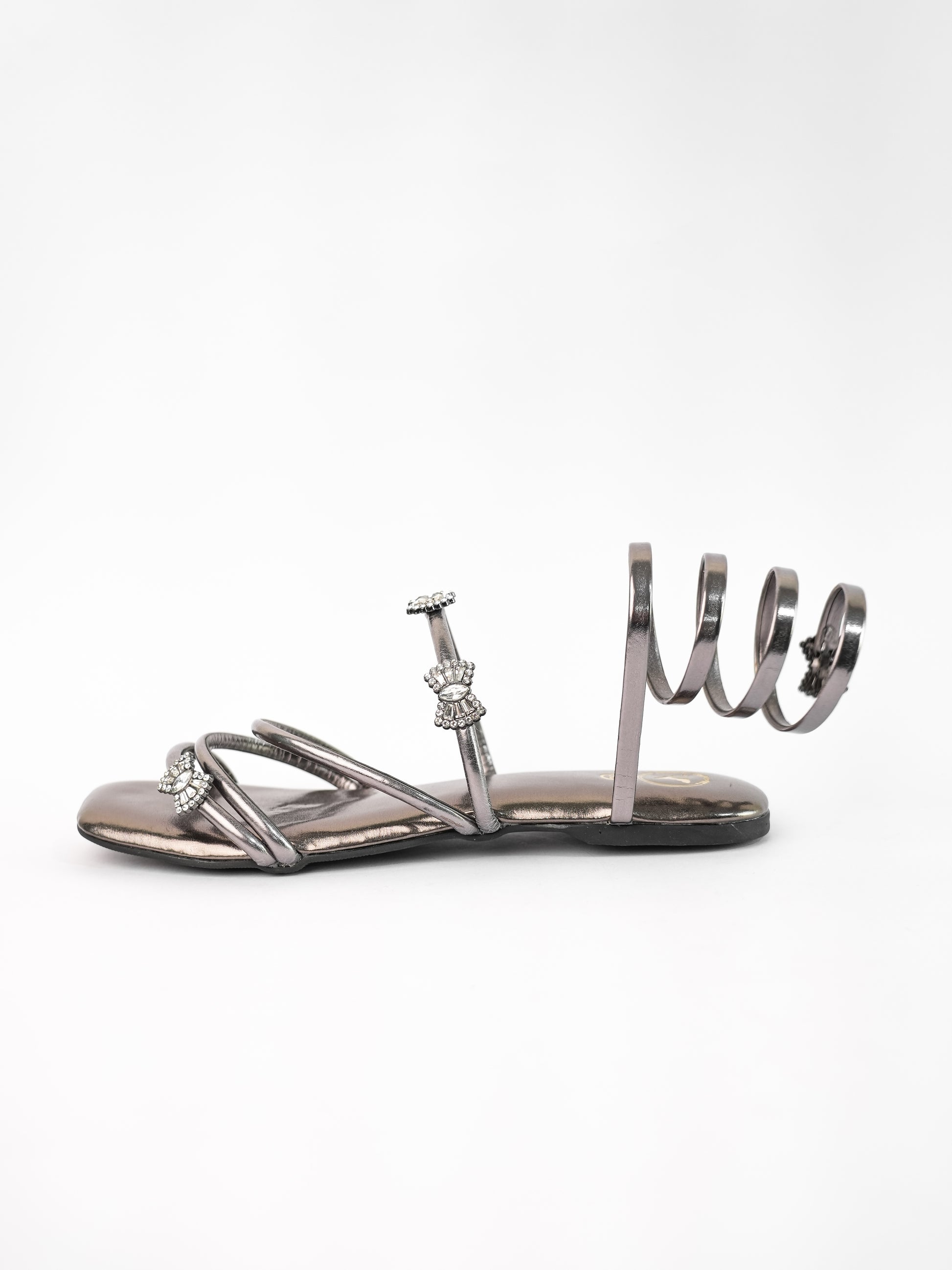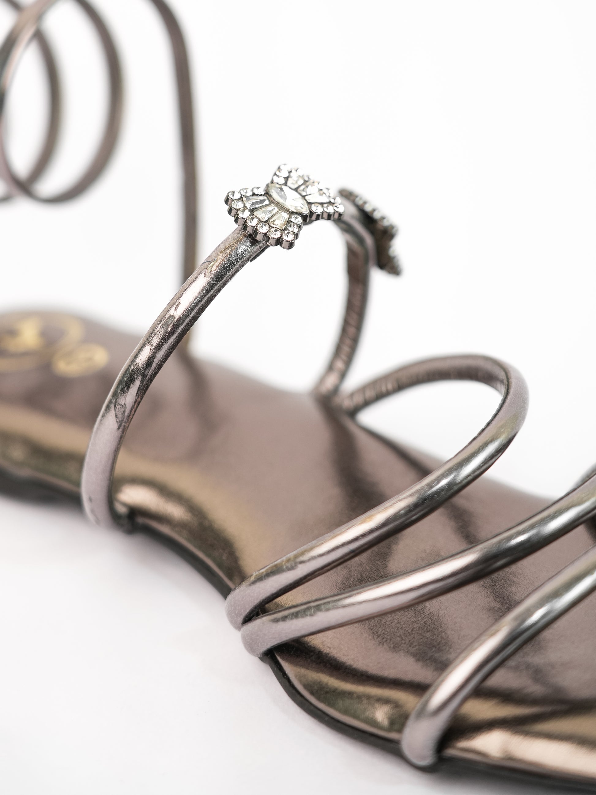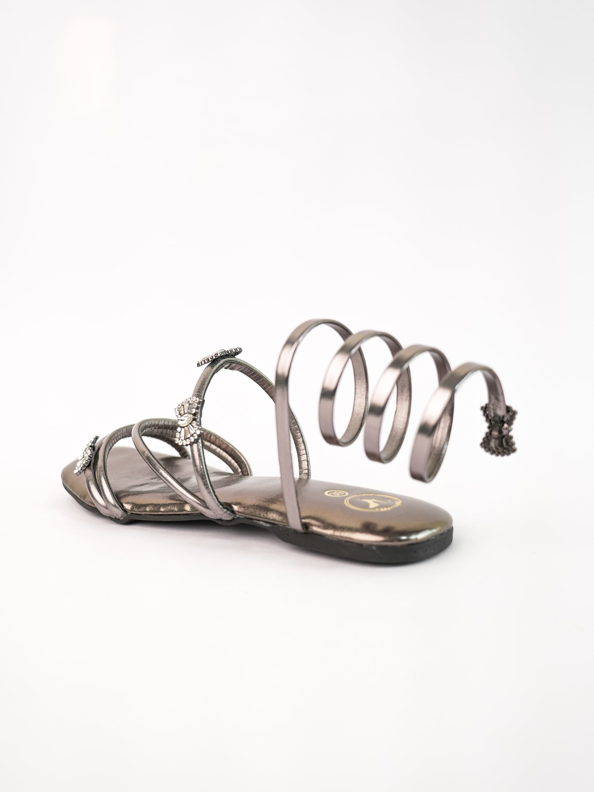 Grey Open Toe Narrow Fit Butterfly Spring Flats