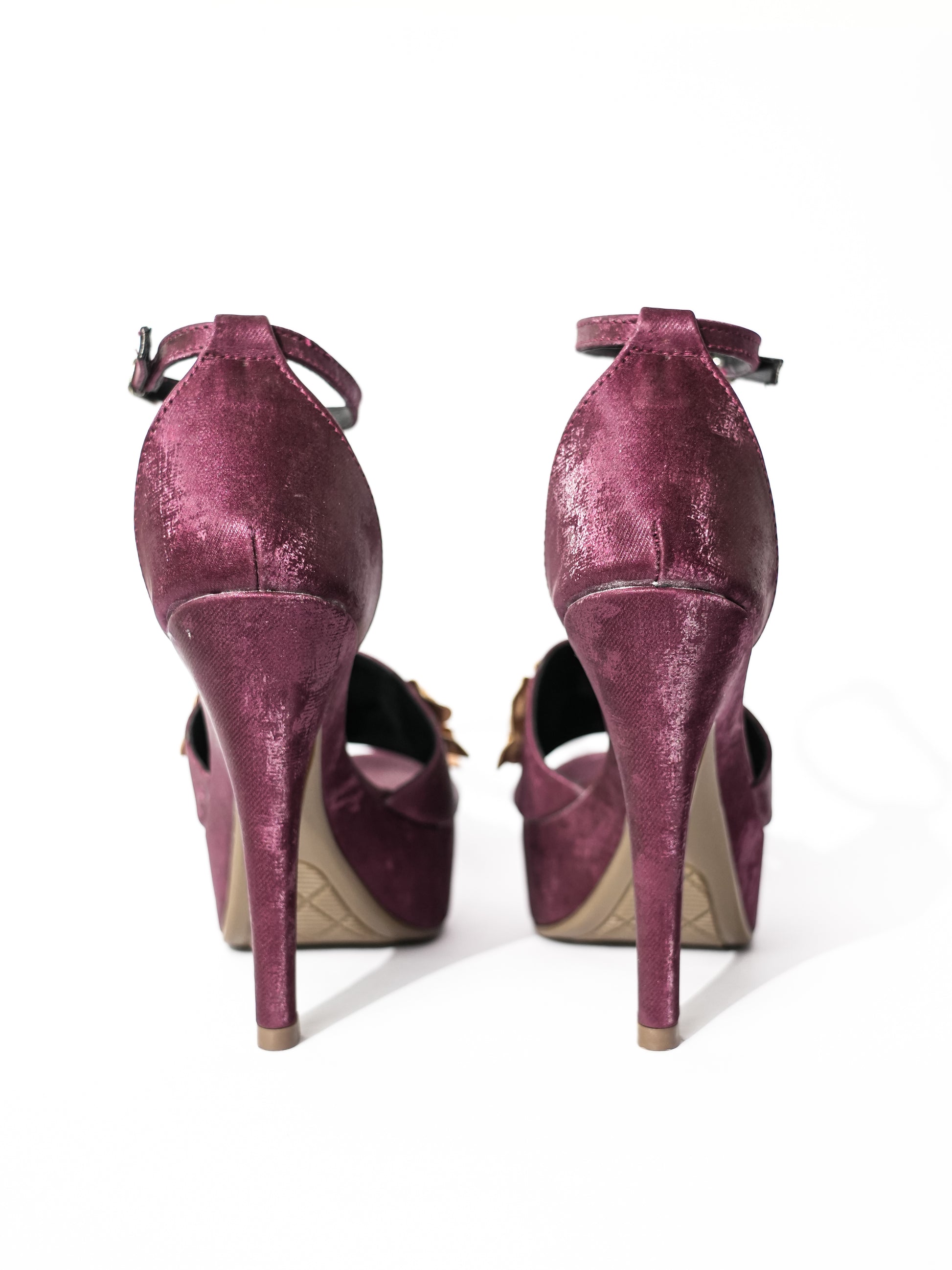 Maroon Open Toe Broad Fit Forever Rose Elevated Heels