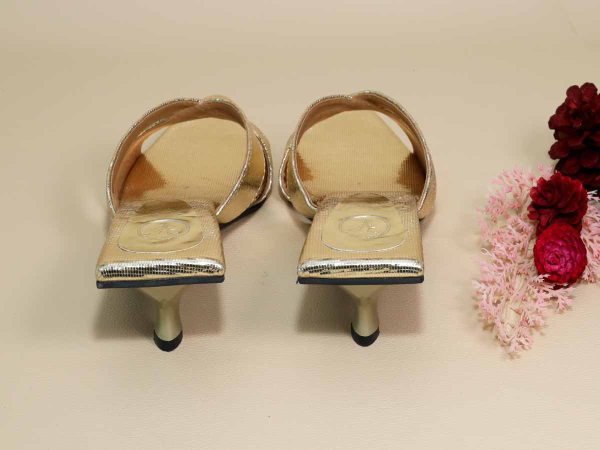 The New Gold X Kitten Heel features a stylish cross-strap design in a shimmering gold finish that adds effortless elegance to any outfit. Crafted for comfort with a cushioned footbed and a stable kitten heel, it is perfect for festive occasions, parties, and evening wear.
