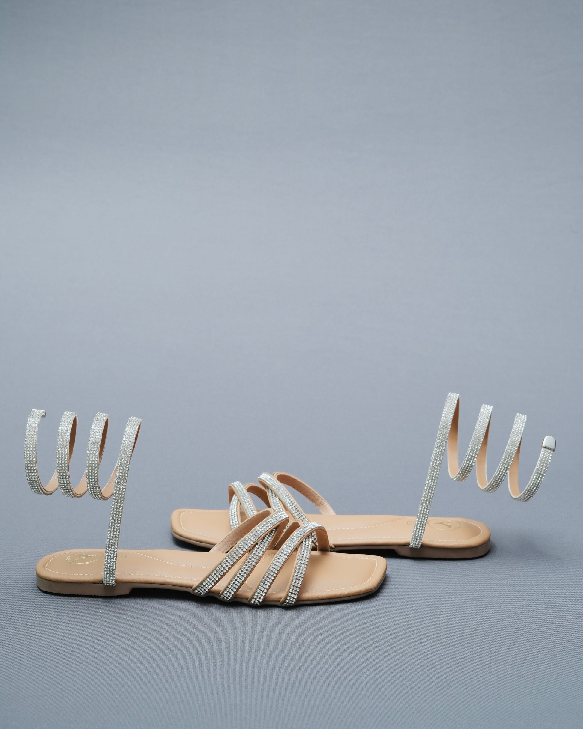 Experience the perfect blend of style and comfort with Sana K's nude footwear, adorned with elegant rhinestones and unique silver springs. Designed with memory foam cushions, these Flats provide a luxurious treat for your feet. Perfect for both parties and weddings, the front strings and back springs ensure a sophisticated look that doesn’t compromise on comfort. Elevate your wardrobe with the chic design and unparalleled comfort of Sana K Footwear.