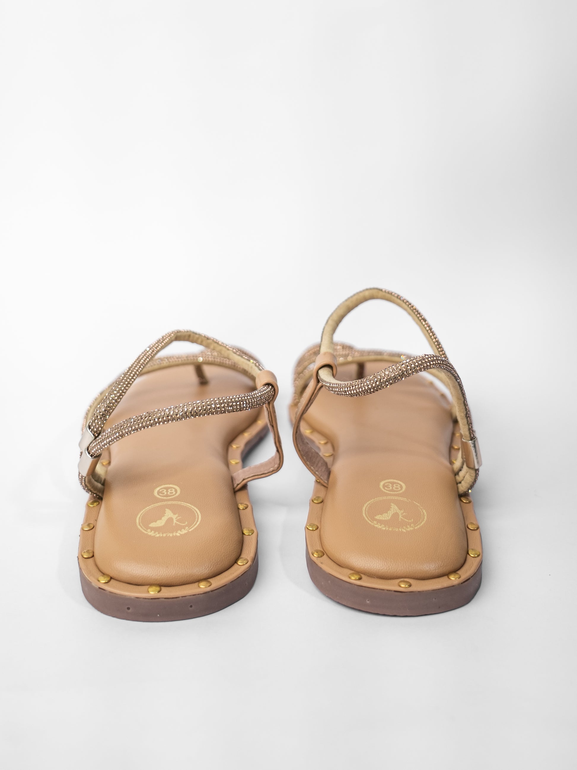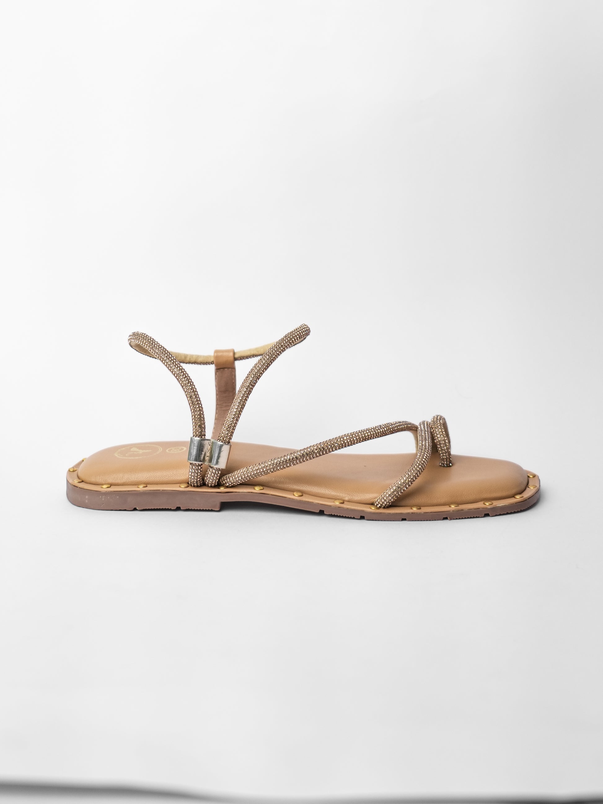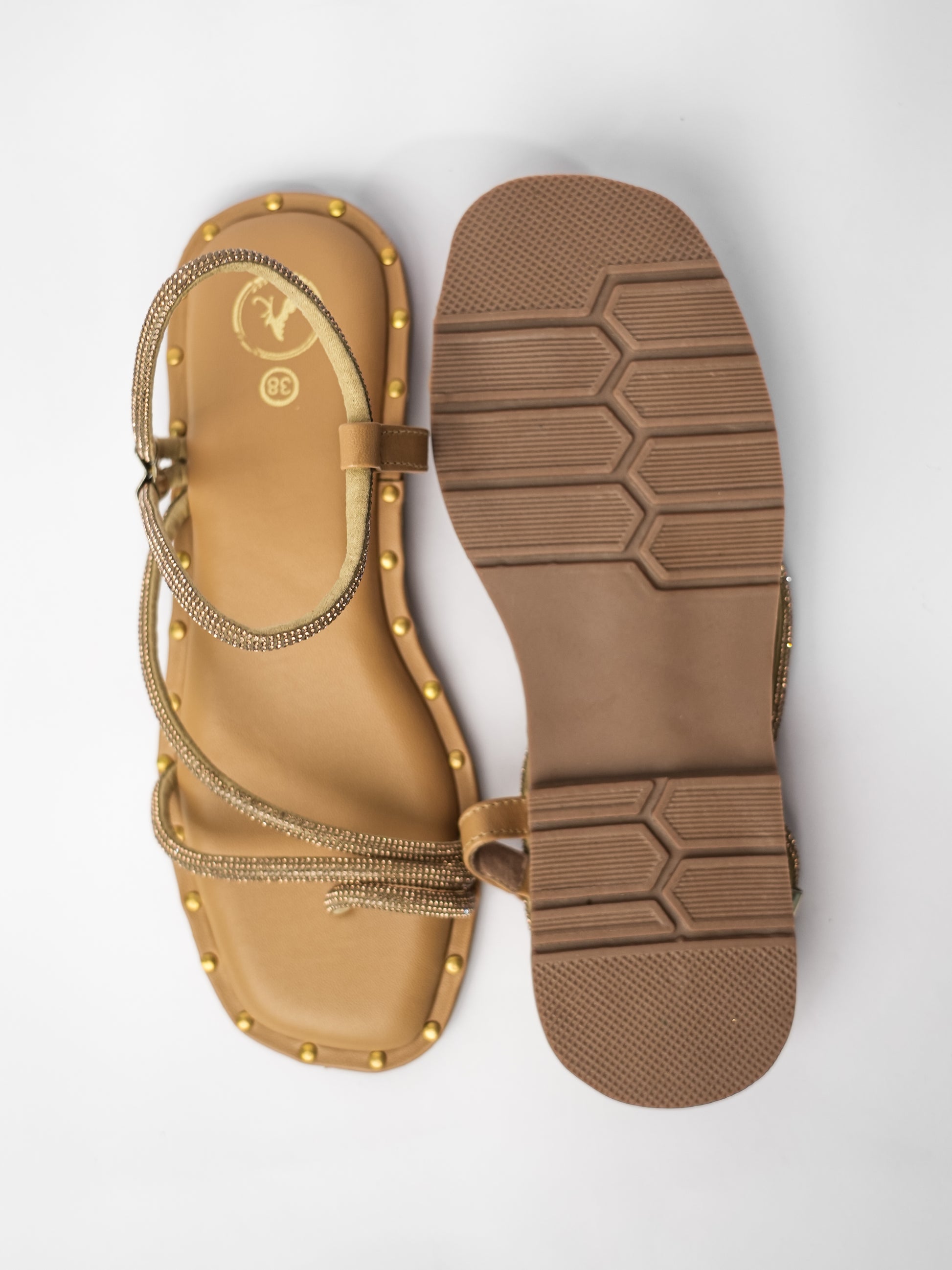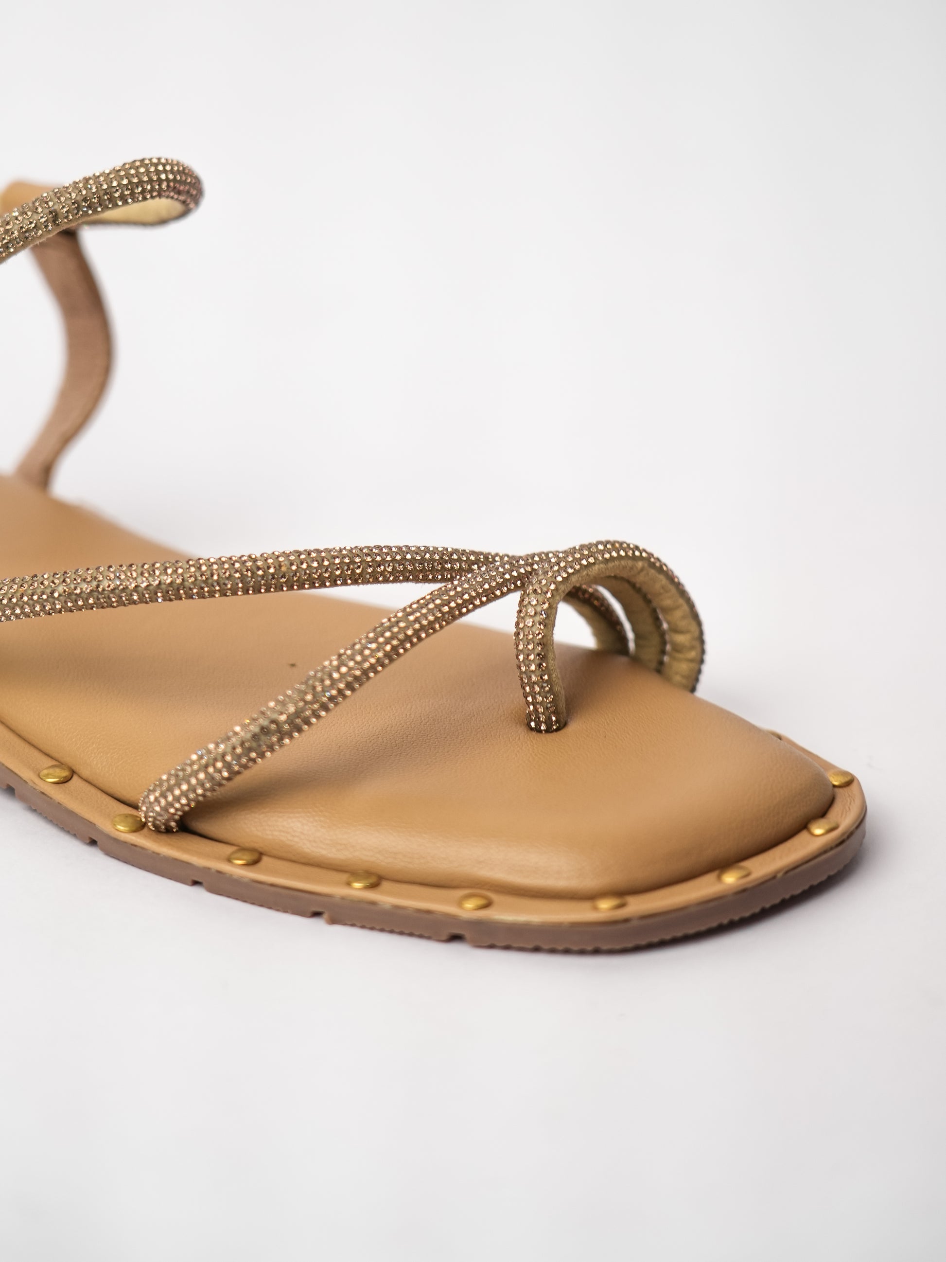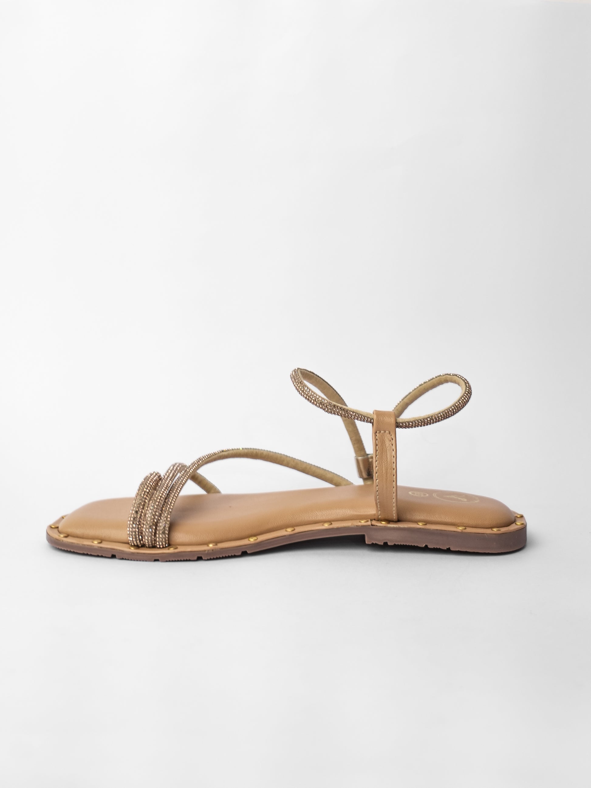 Introducing the Nude Open Toe Malaika Studs Flats, a chic pair of flats adorned with sleek studs and a stunning golden stone chain that accentuates the design. Featuring a stylish zigzag ankle strap for a secure fit, these flats are the perfect balance of elegance and edge. Handcrafted with precision by Sana, they come with a memory cushion footbed, ensuring maximum comfort with every step. Perfect for elevating your everyday look while keeping you comfortable.
