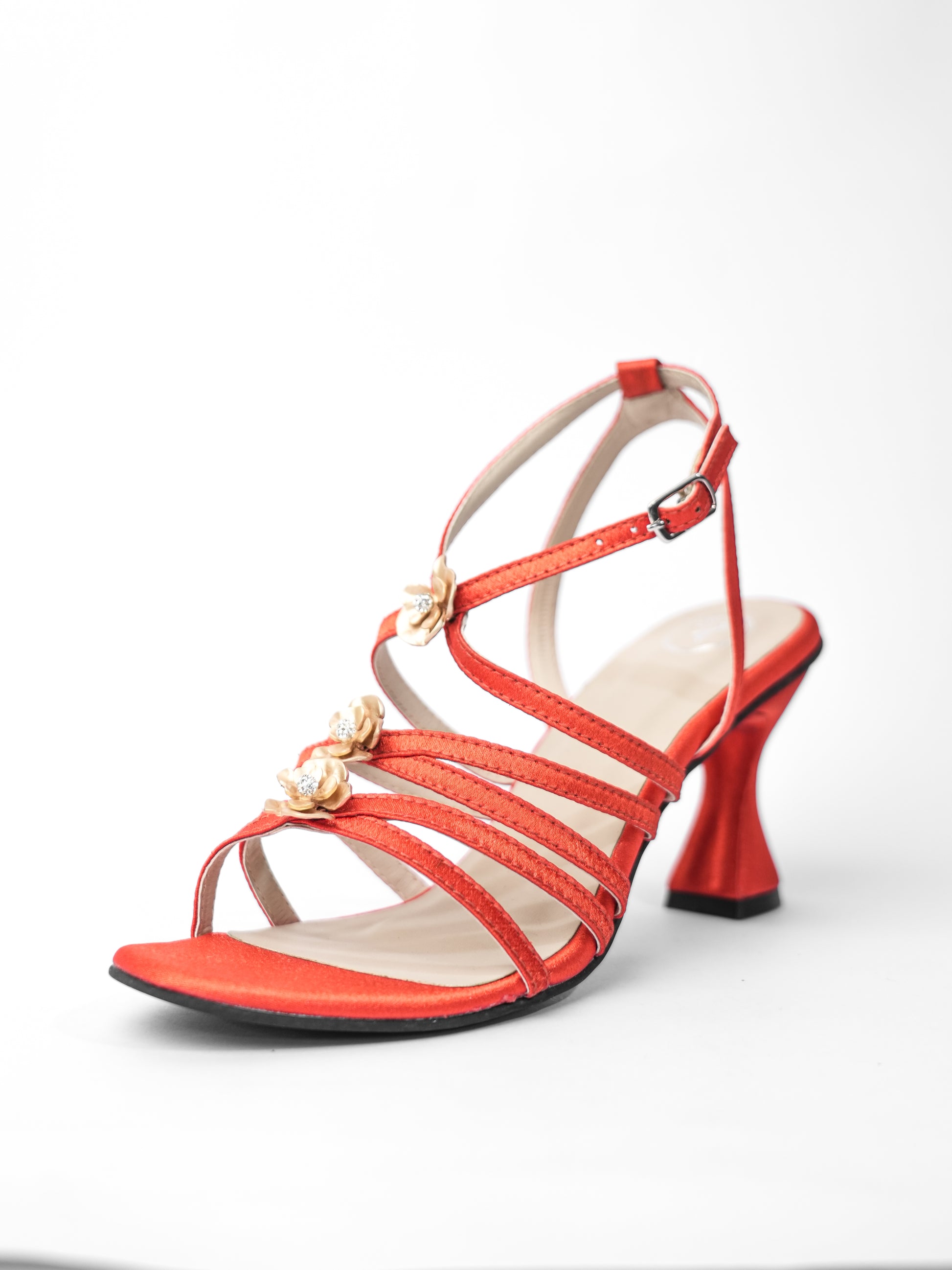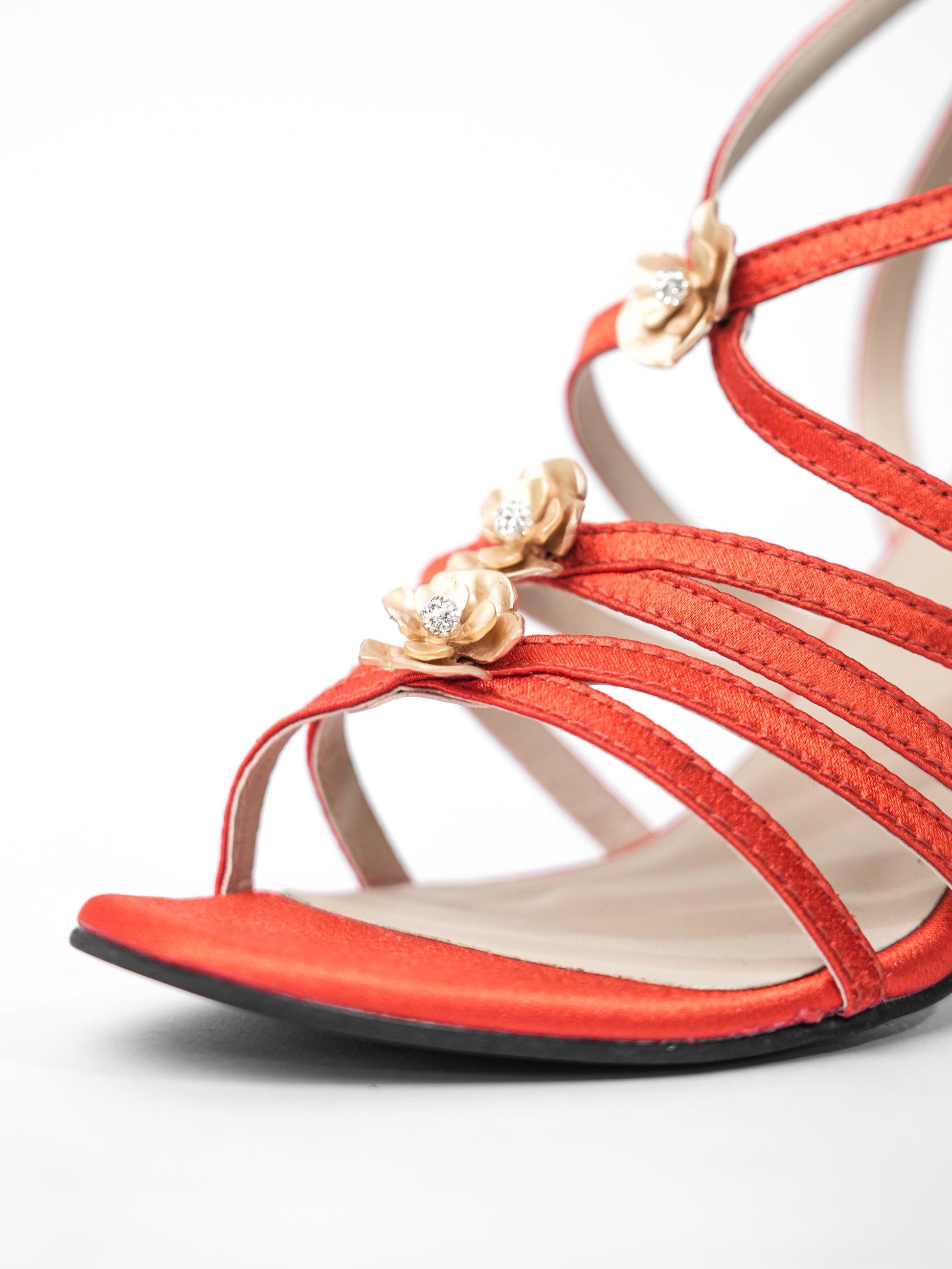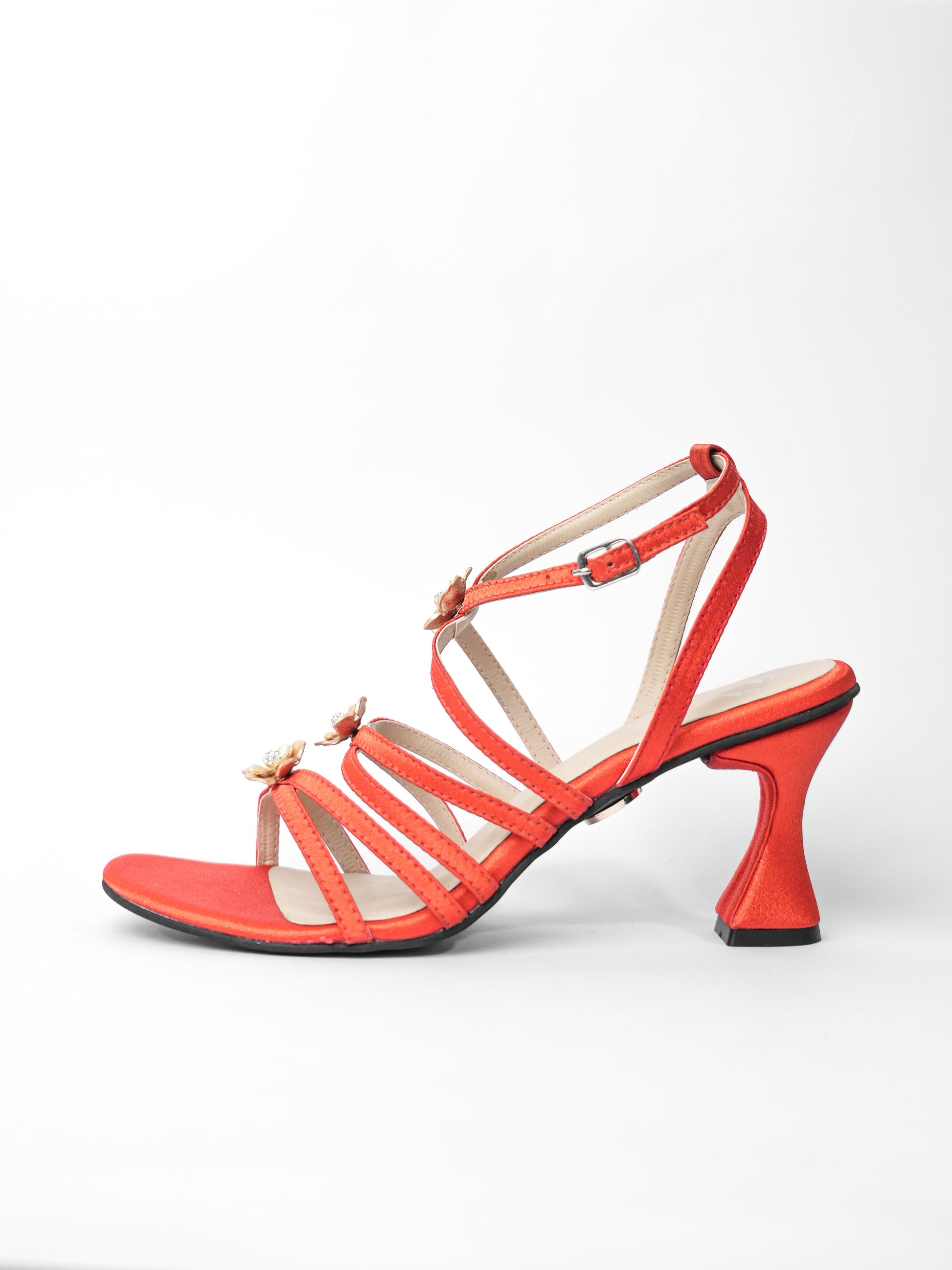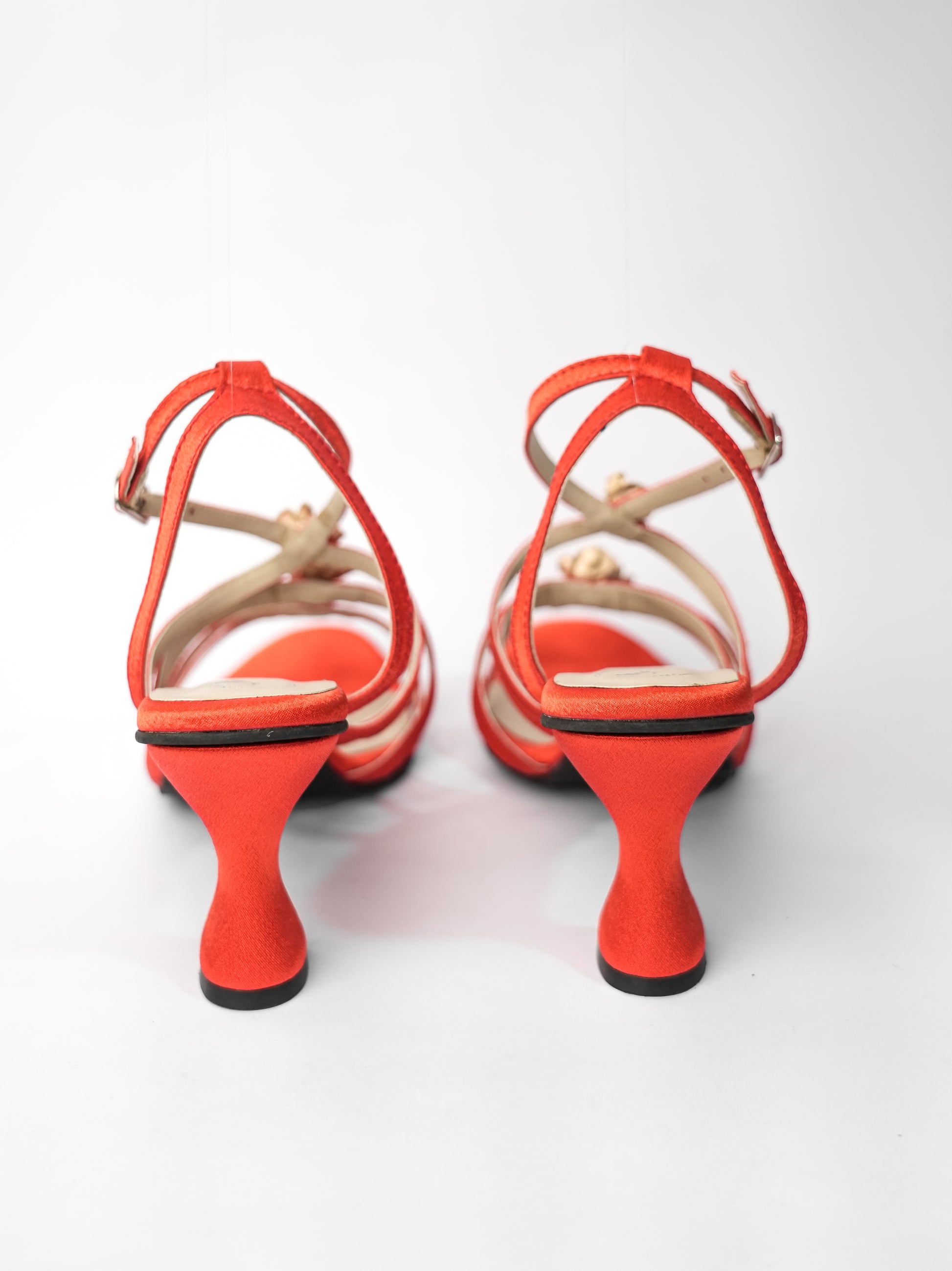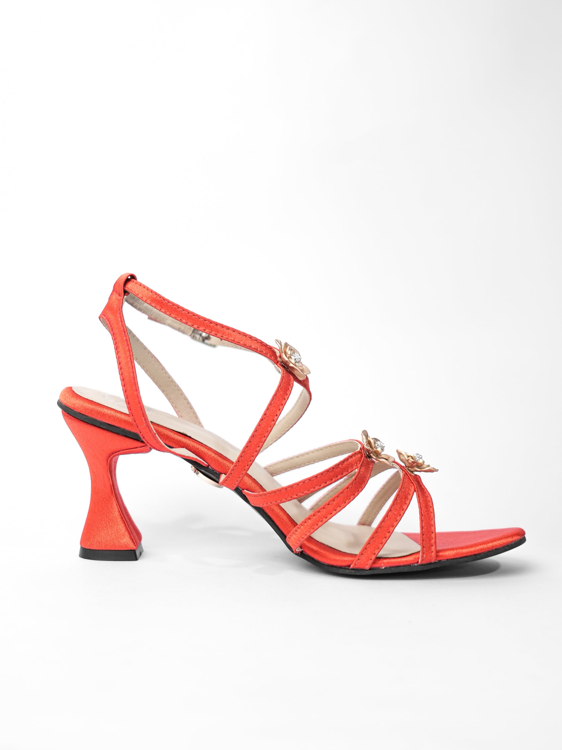 Orange Open Toe Narrow Fit Burnt Flower Heels