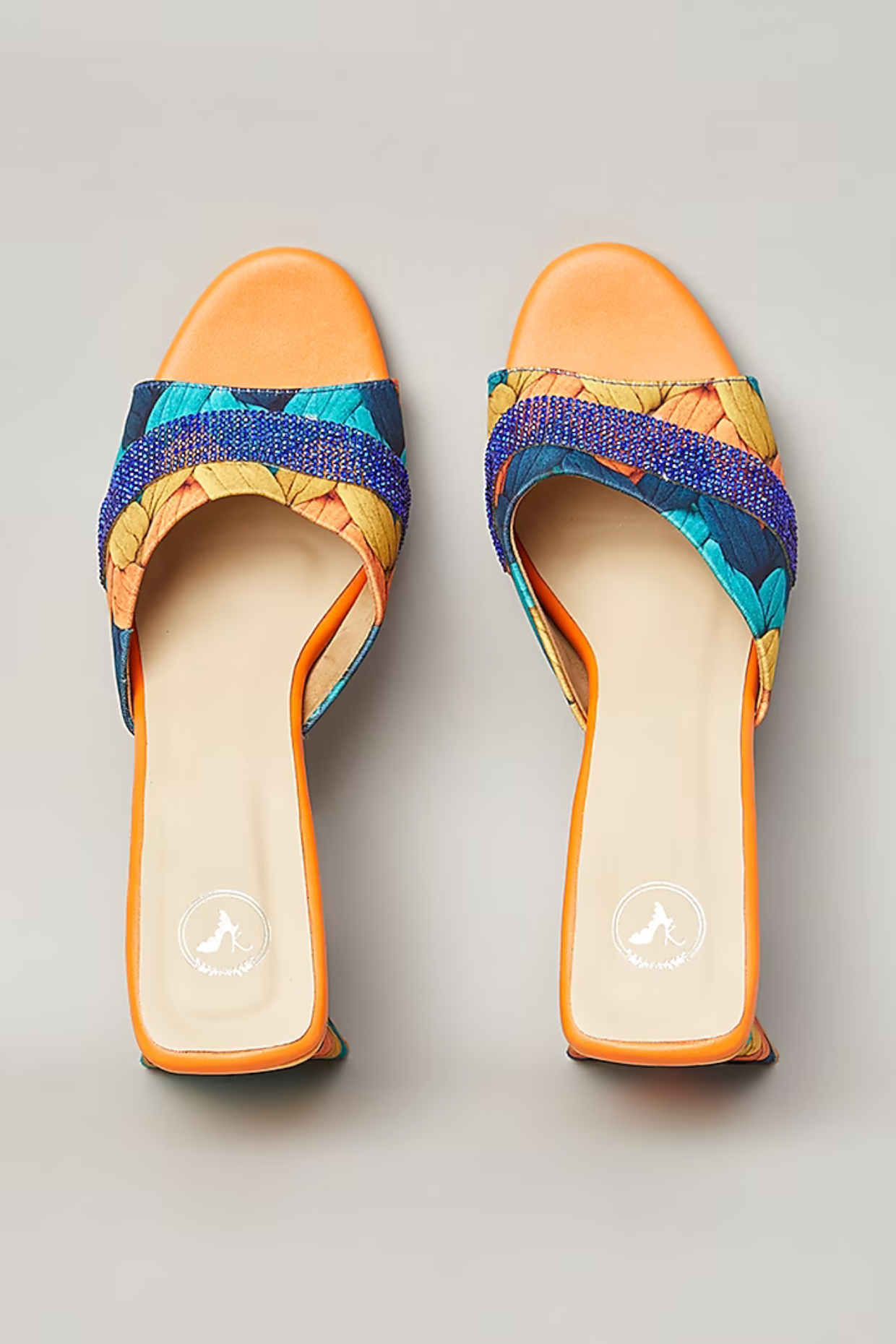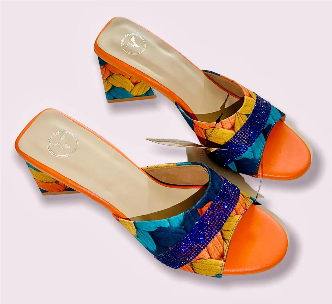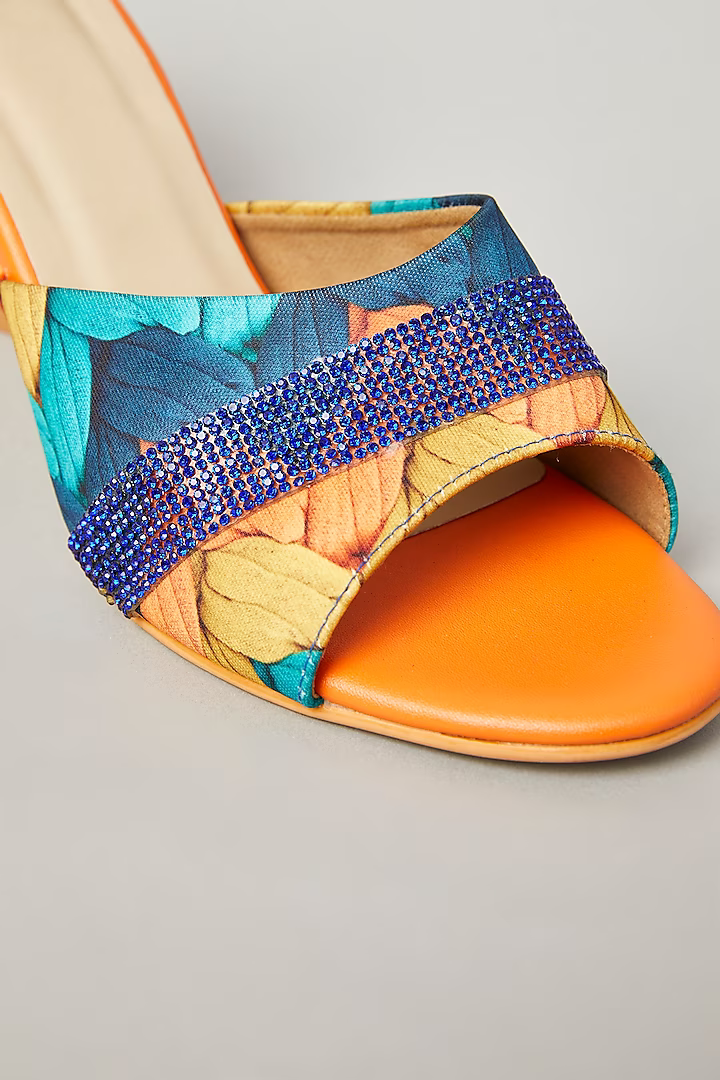 Step into vibrant style with our Orange Pop Colour Open Toe Heel Sandals. These sandals feature a captivating colour pop series of materials that create an elegant look for your feet. The unique design is adorned with blue-coloured rhinestone embellishment strings, adding a distinct element to your outfit. Perfect for casual day wear or parties, these versatile sandals effortlessly complement both Indian and Western attire, making them a stylish choice for any occasion.