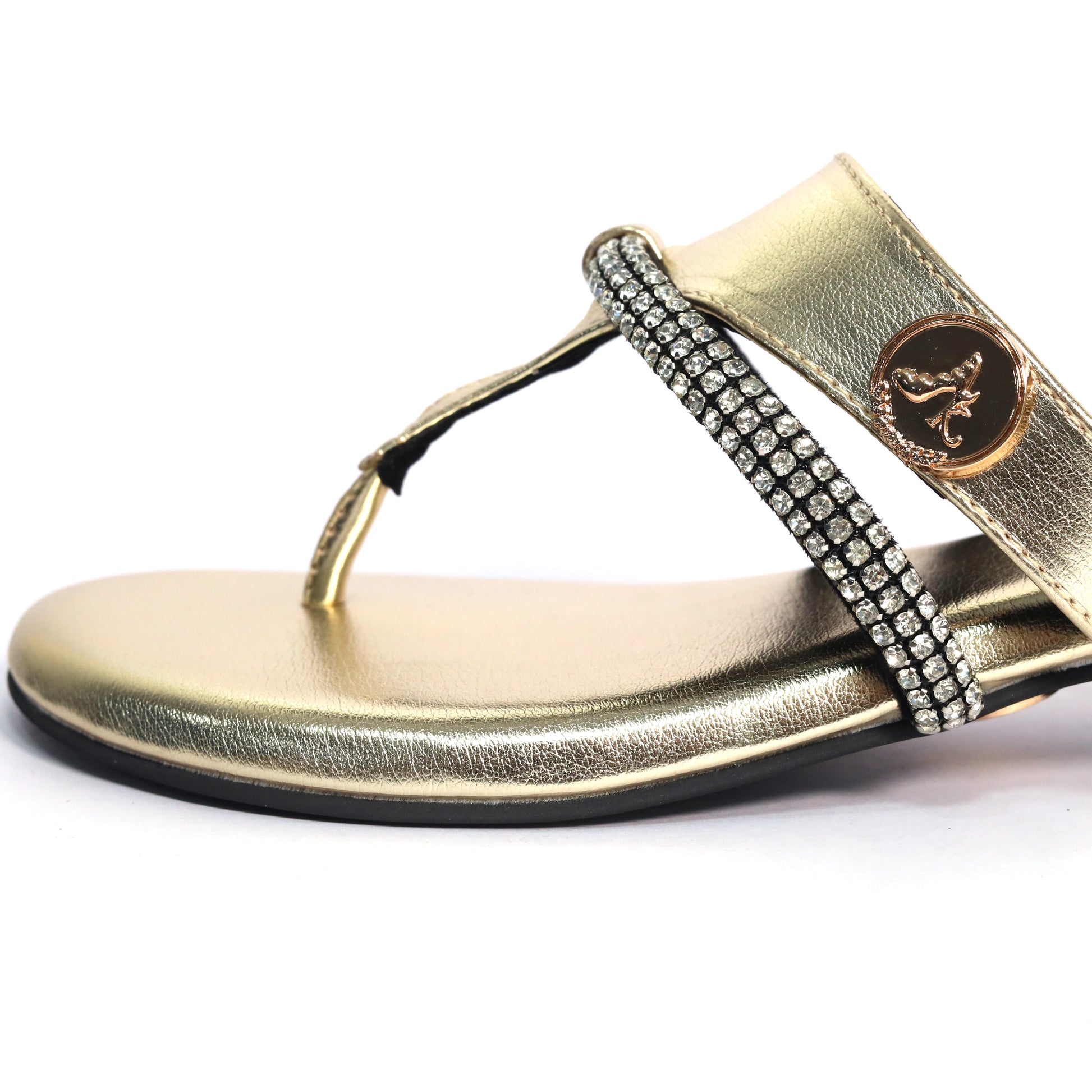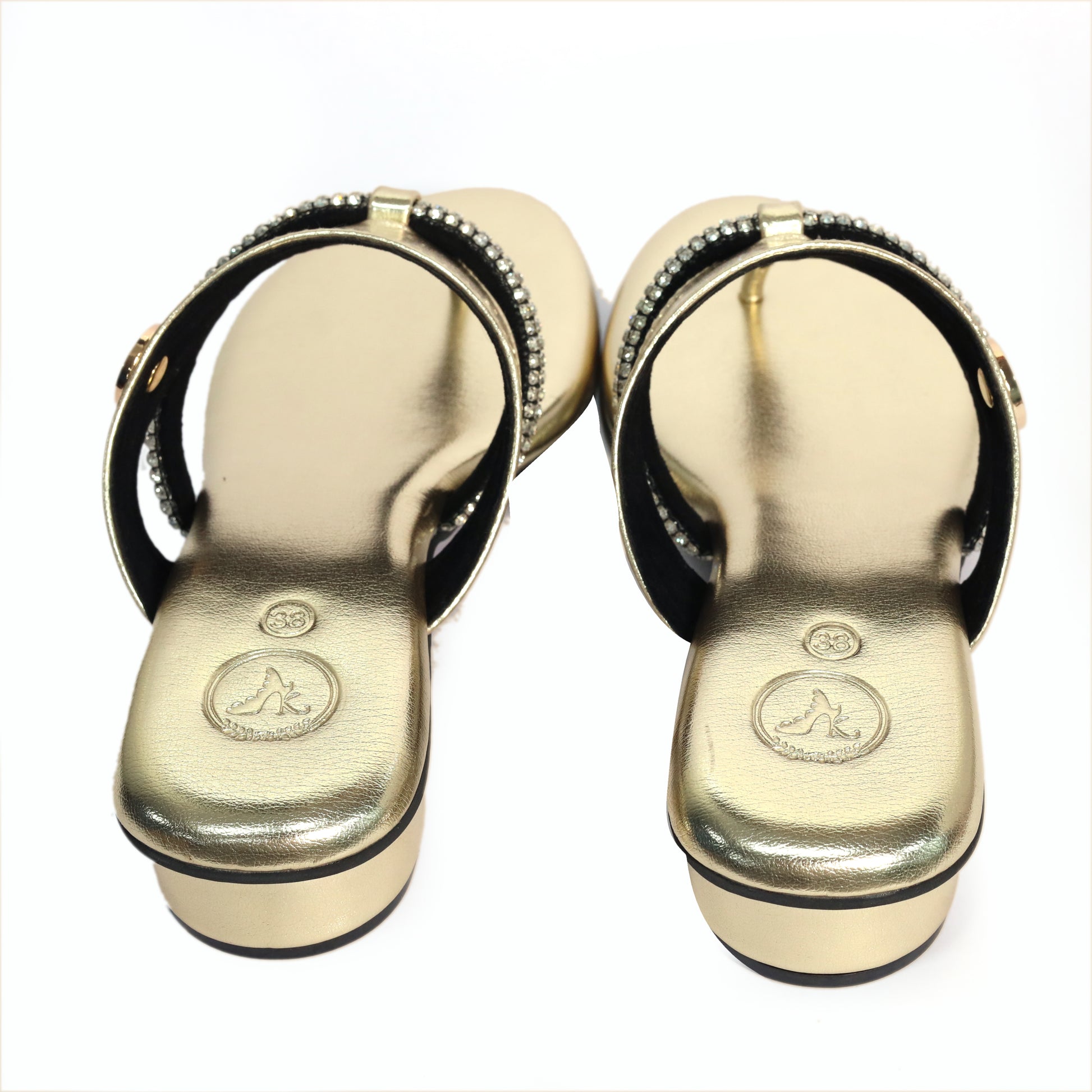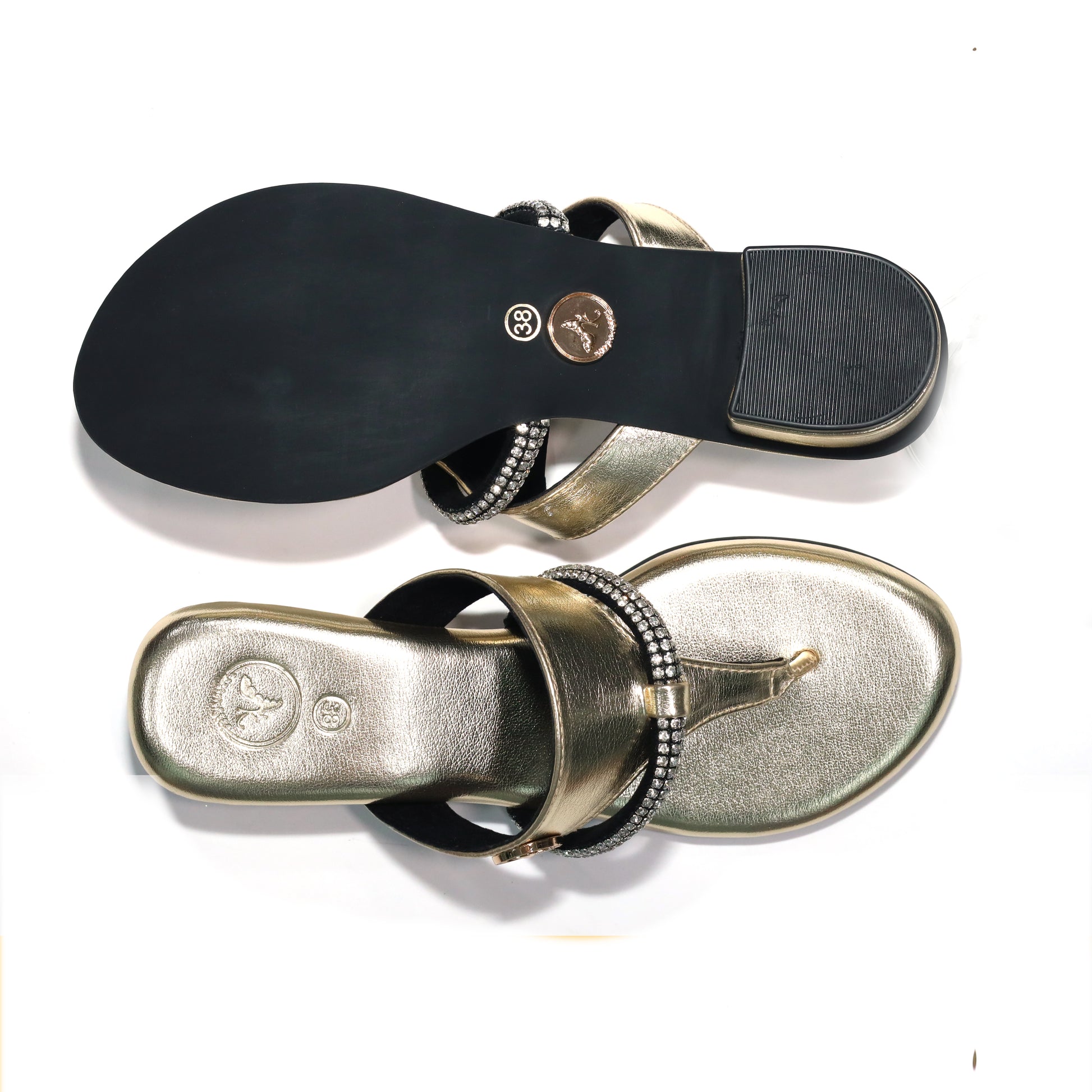 Step into timeless elegance with the Orbit Gold Open Toe Heels for Women, a perfect blend of festive flair and everyday comfort. Crafted in premium faux leather, these golden flat sandals feature a chic open toe design and a toe loop for added support and style. The delicate rhinestone embellishments add a sparkle that complements both ethnic and Indo-western outfits, making them your go-to footwear for weddings, festivals, and celebrations.
