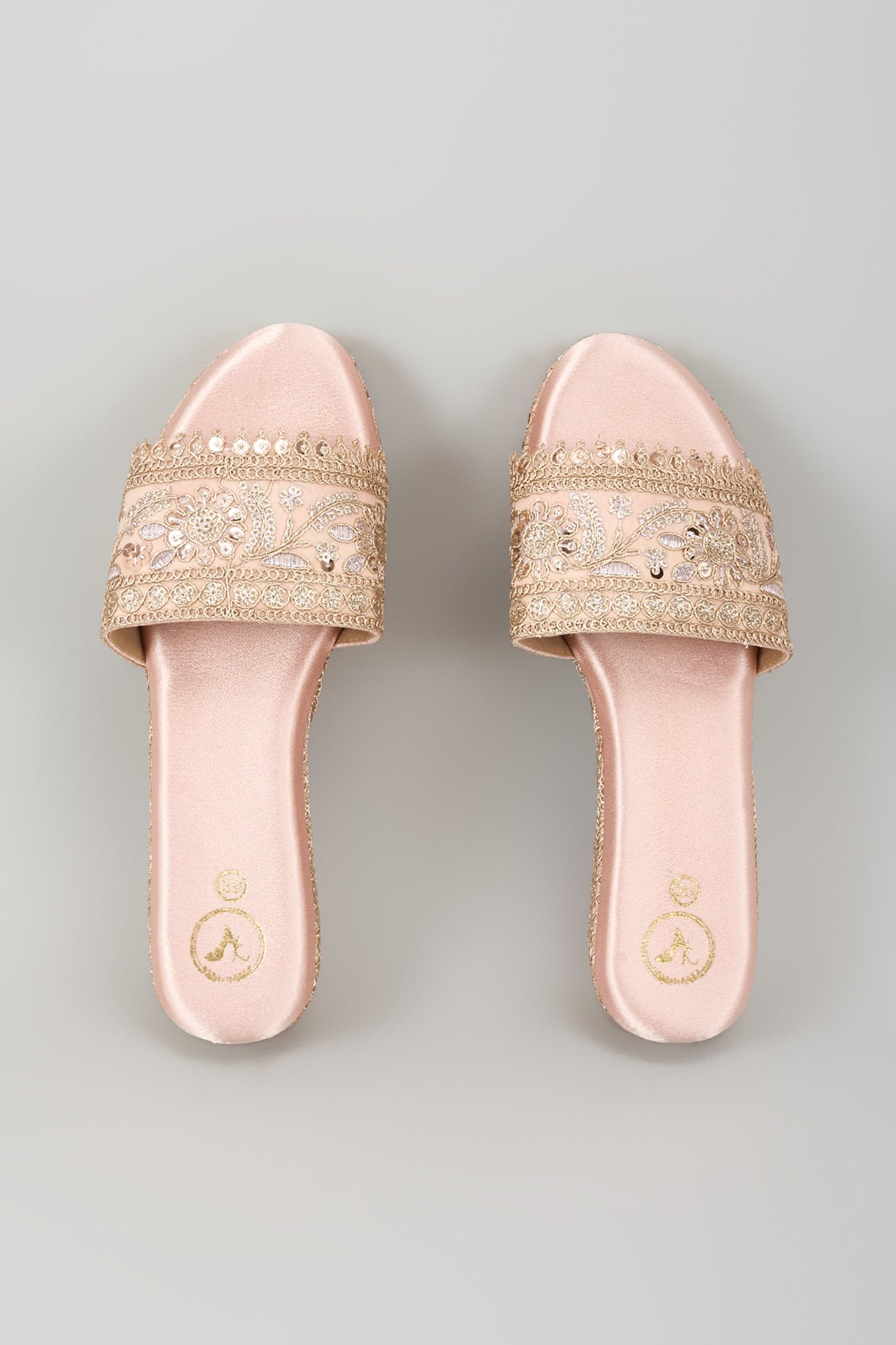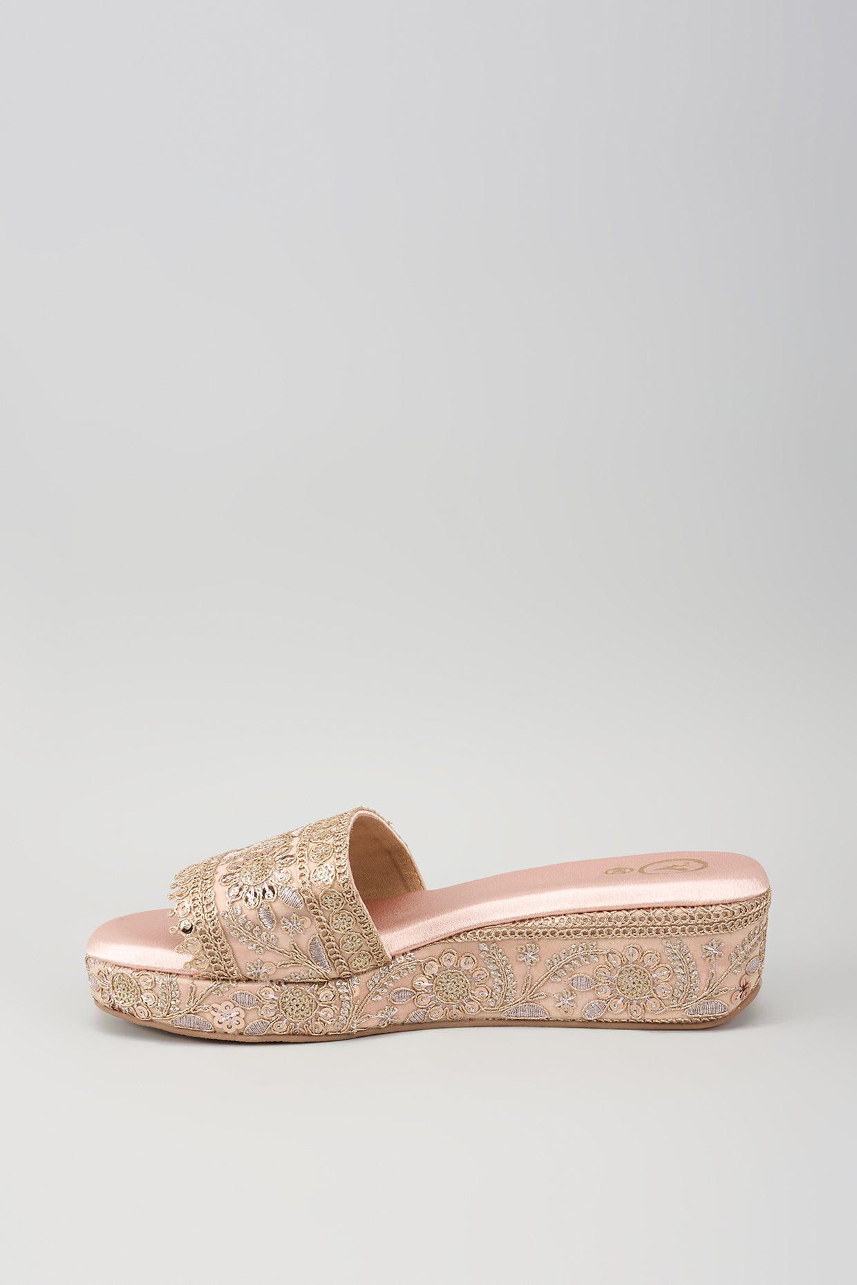 Rose Gold Synthetic Leather Sequins Embroidered Wedges