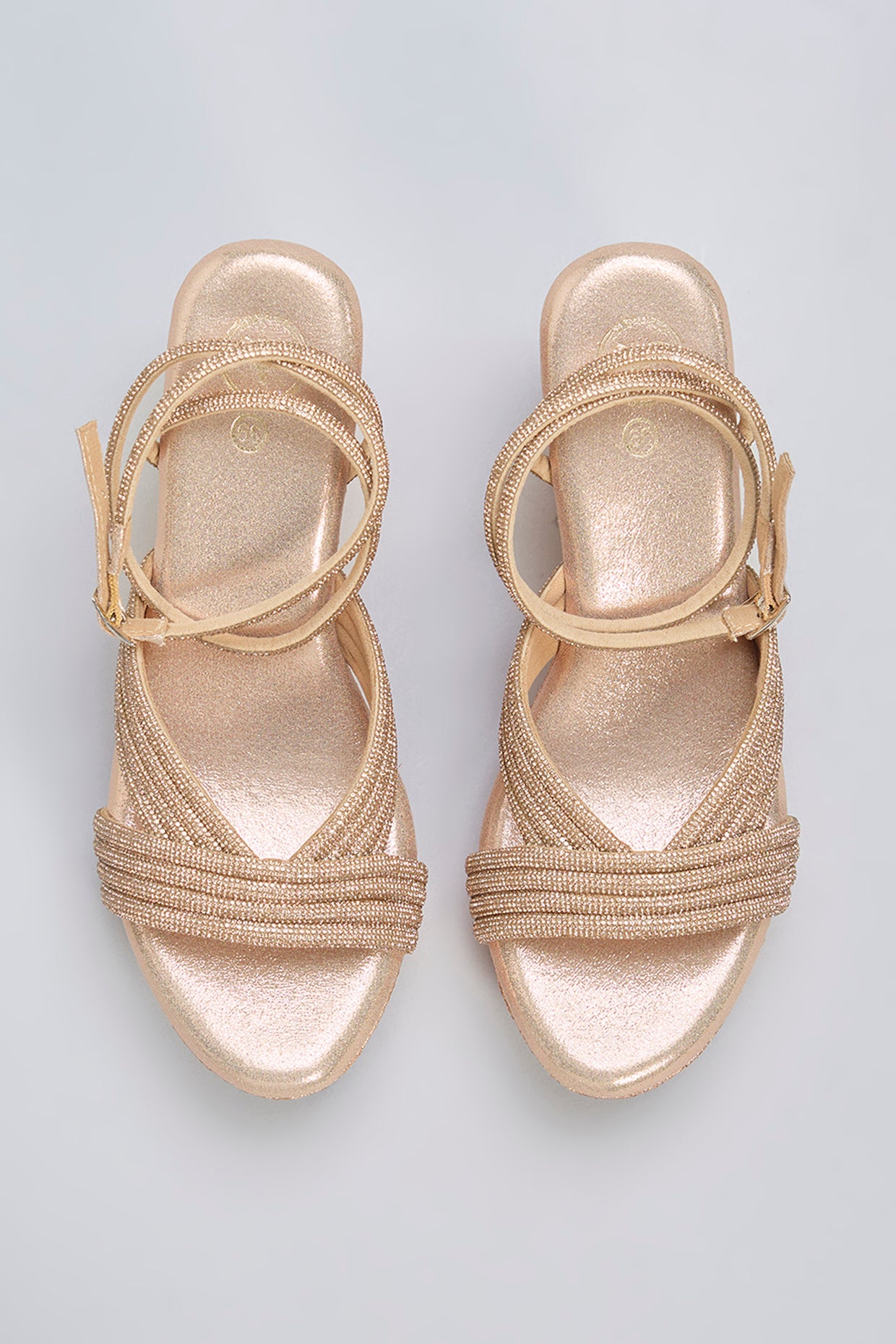 Rose Gold Vegan Leather Rhinestone Embellished Wedges