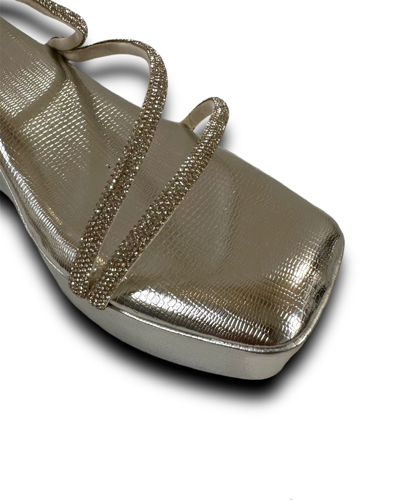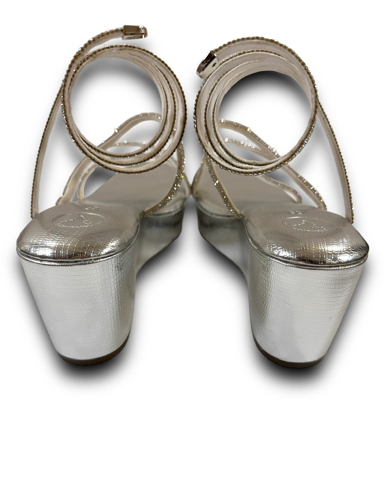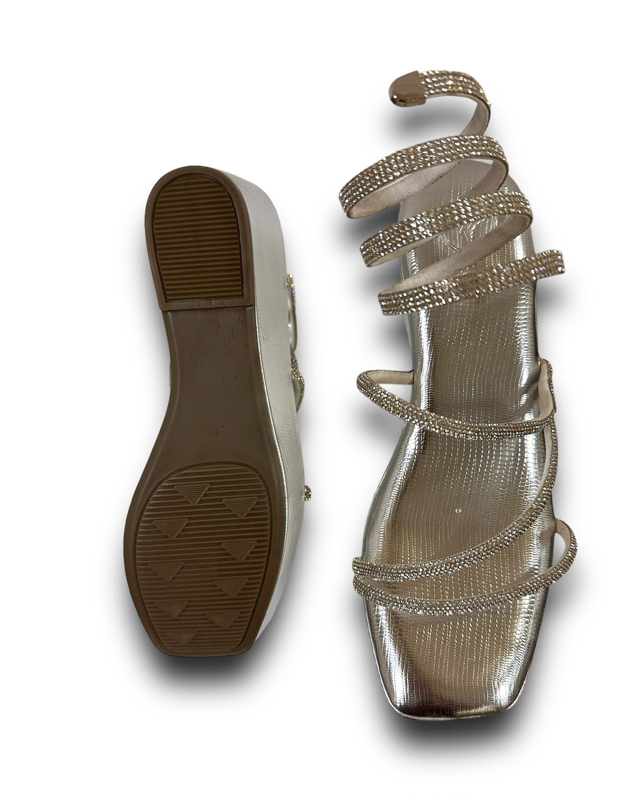 The Silver Lizard Spring Sandals add a touch of elegance and beauty to your feet with their chic design. Embellished with sparkling diamante springs around the ankle, these sandals make a stunning statement. The memory cushion wedge heels provide exceptional comfort, allowing you to stay stylish all day or night. Ideal for weddings and parties, these sandals elevate any outfit with grace and sophistication.