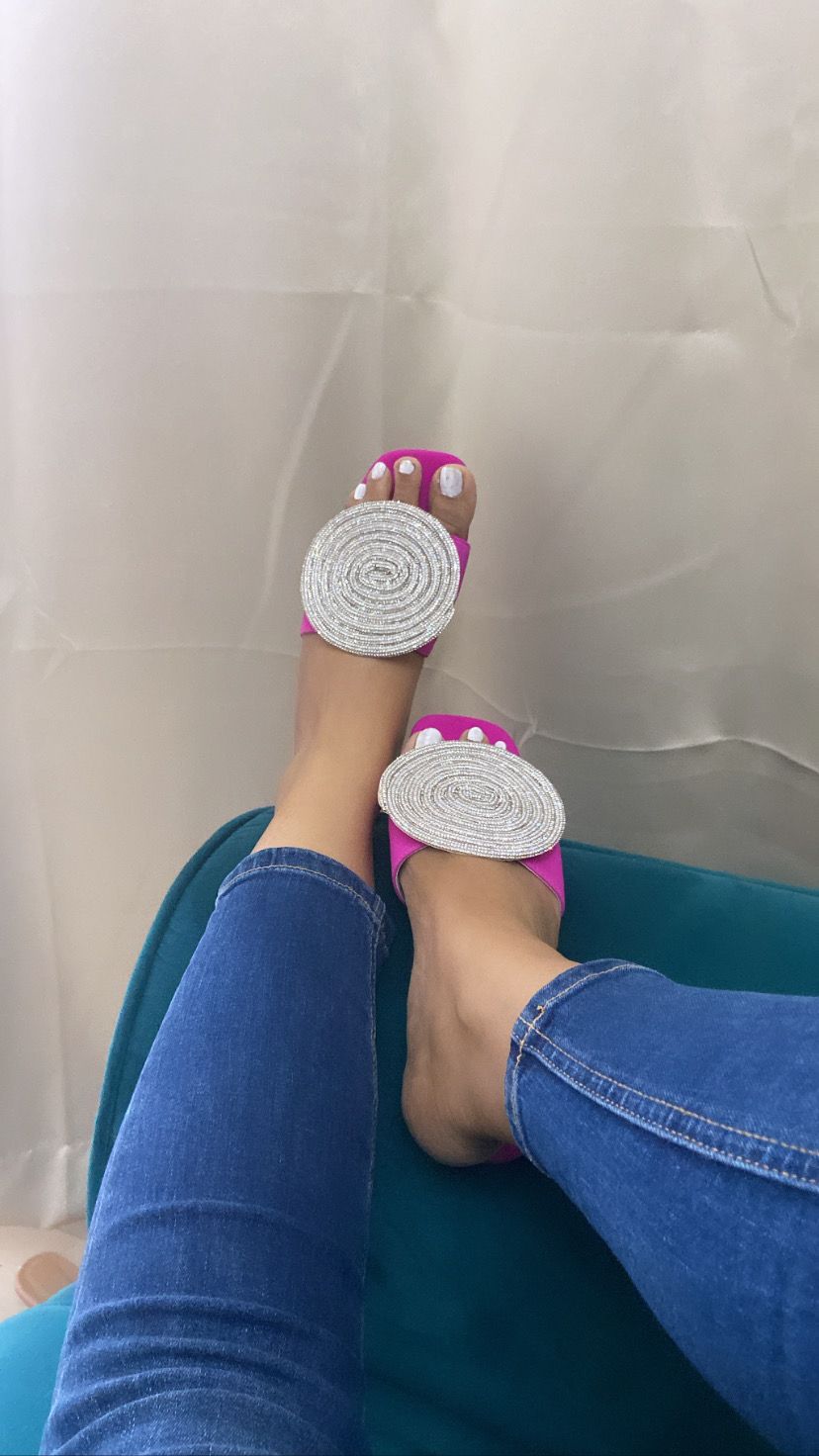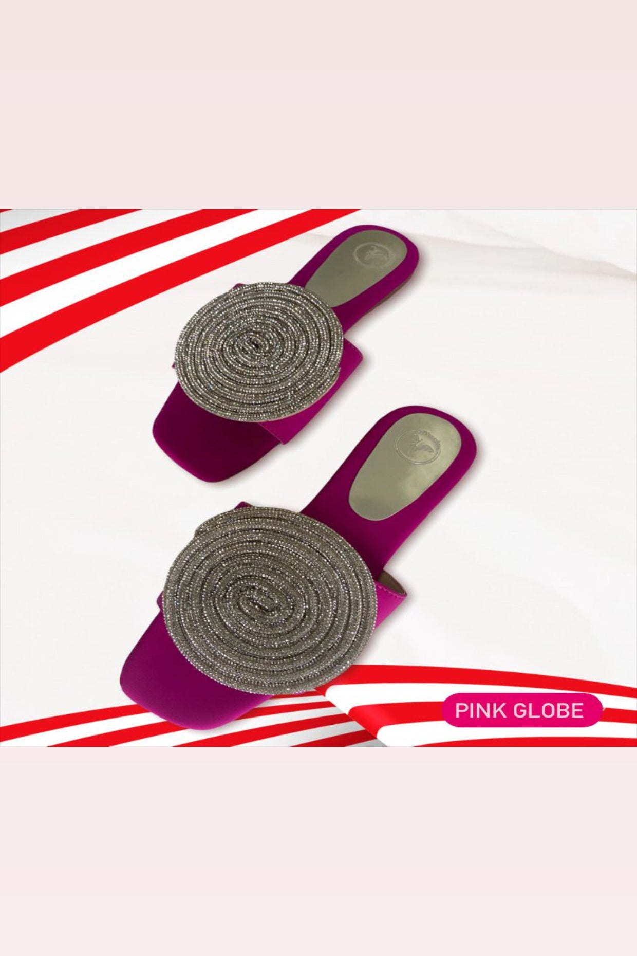 Introducing the ultimate combination of style and comfort with our Pair of Globe Flats! Designed with your daily grind in mind, these flats are made with memory foam and extra cushioning to ensure that your feet remain comfortable all day long. With its unique styling featuring silver strings and a pink base, you'll be adding a touch of elegance to your outfit.